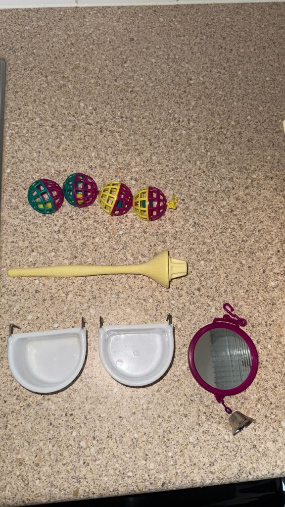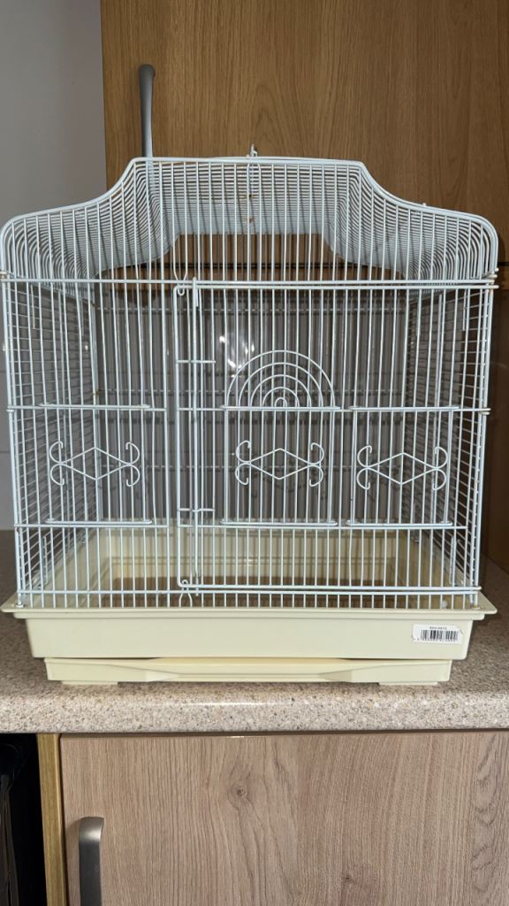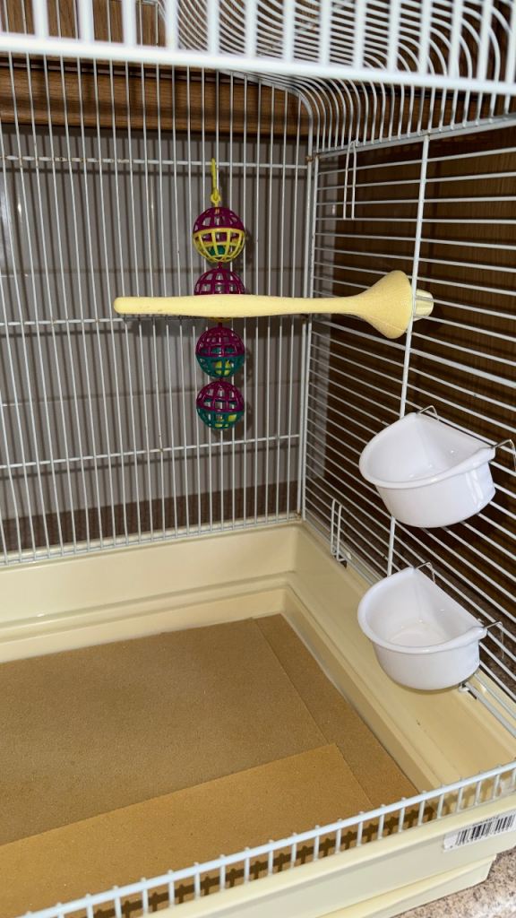 Cadge, bird bowls and accessories included.