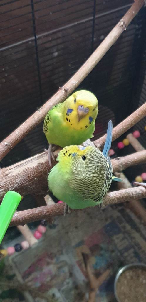 Bred in an indoor aviary feeding and drinking well. Fed on good quality budgie seed and Millet spray also greens ie rocket watercress baby leaf salad also peashoot salad and spinach