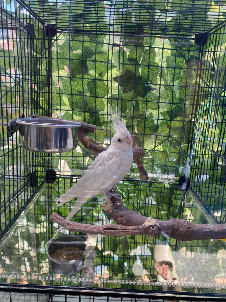 Beautiful hand raised albino chick for sale. I’ve had him for weeks now and have hand raised him for 4 weeks he’s very tame and is still building bonds and relationships with people he is a suspected male as he loves to sing I want him to go to a good home I can give some food with him. For anymore questions leave me a message no haggling and no time wasters please
