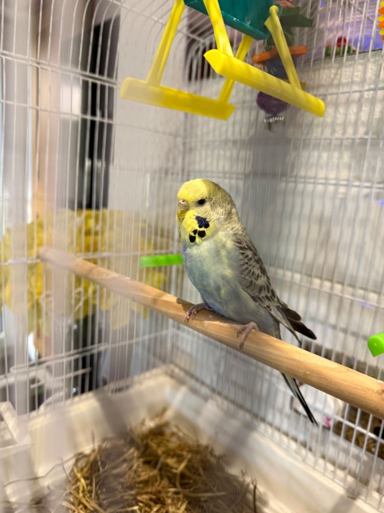Posting for 13+ yearsBeautiful young budgie with cage/accessories
