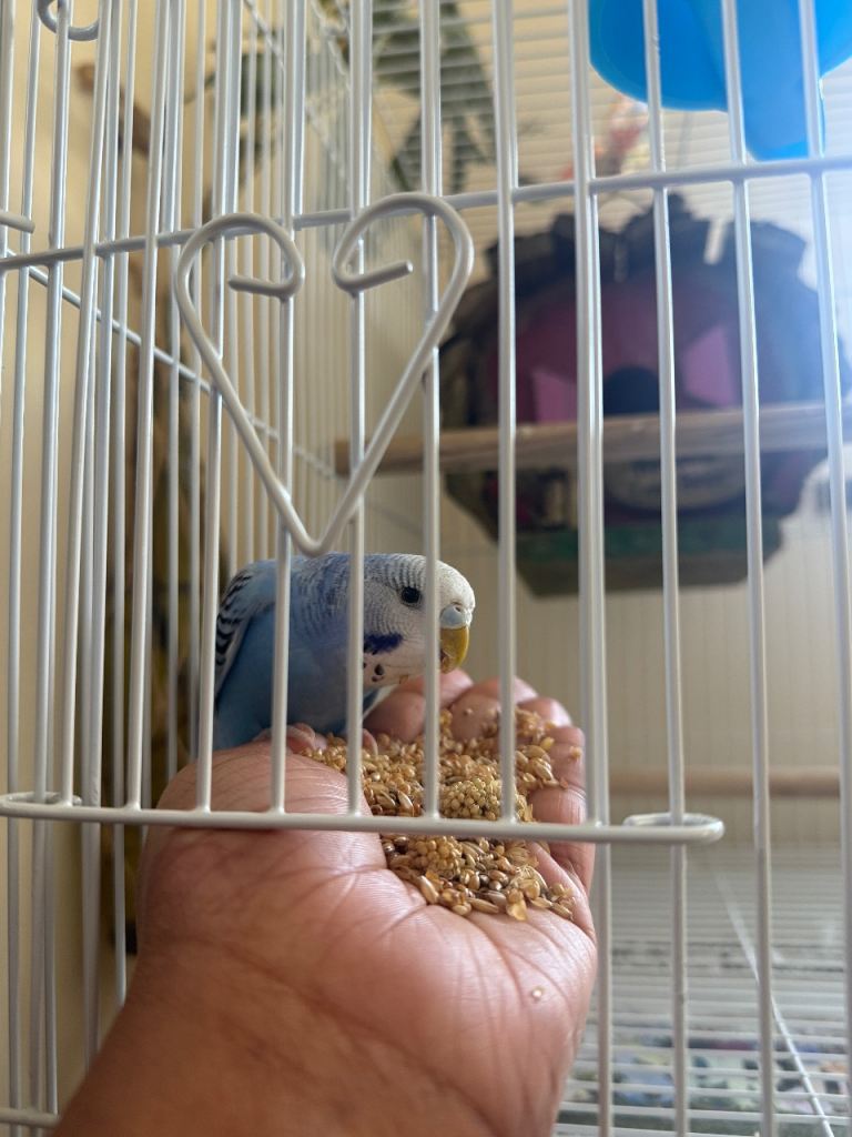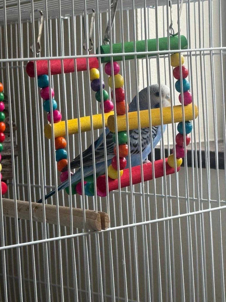 Beautiful blue budgie available for sale. Healthy, active, and very friendly bird. The budgie has bright feathers and is well cared for.