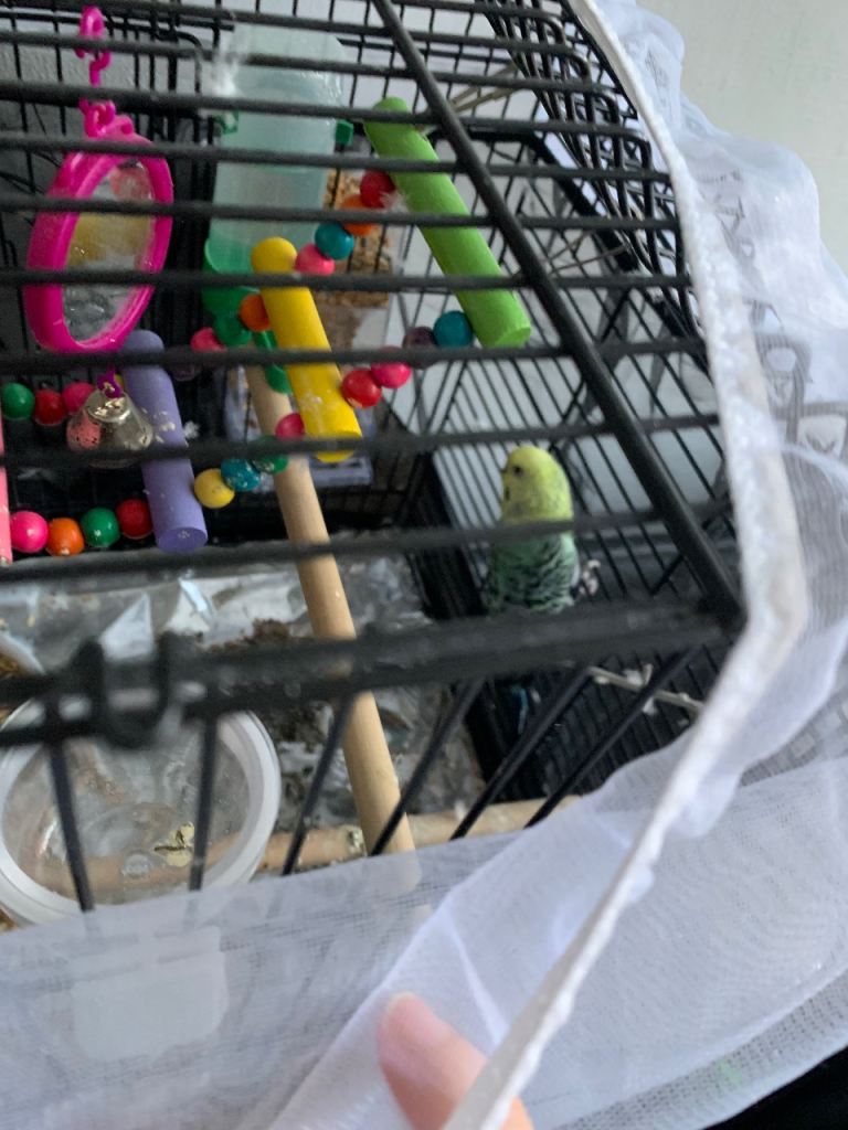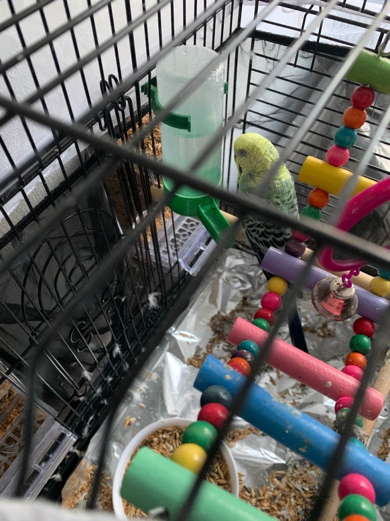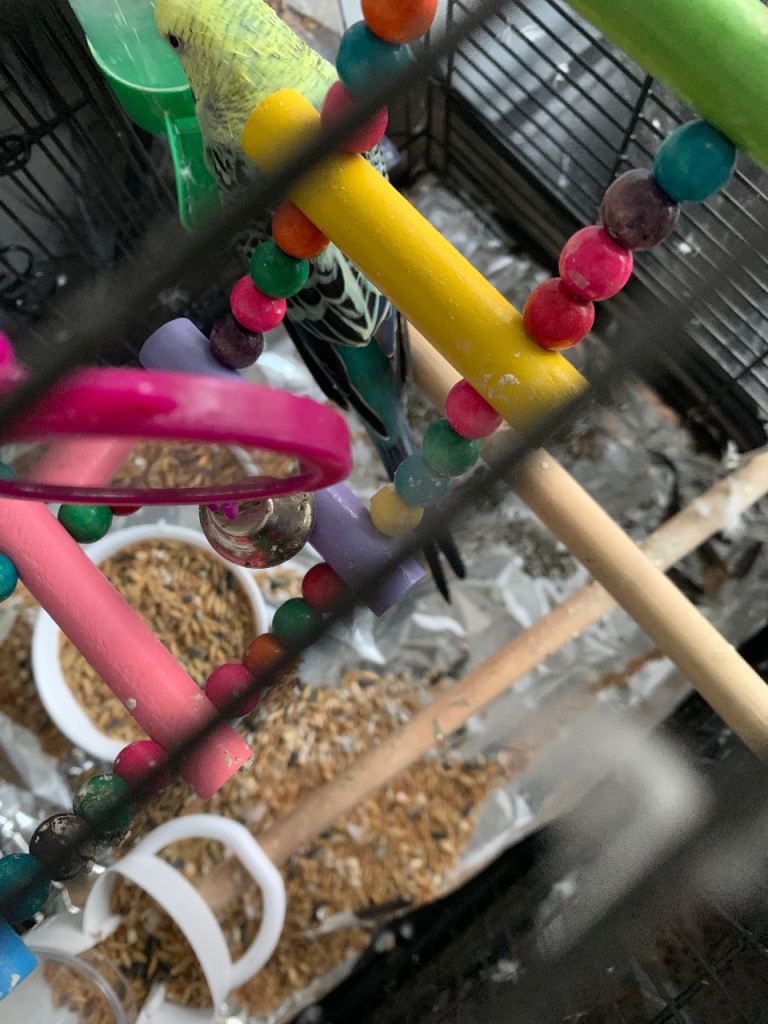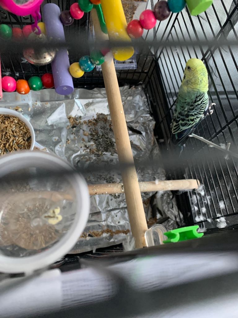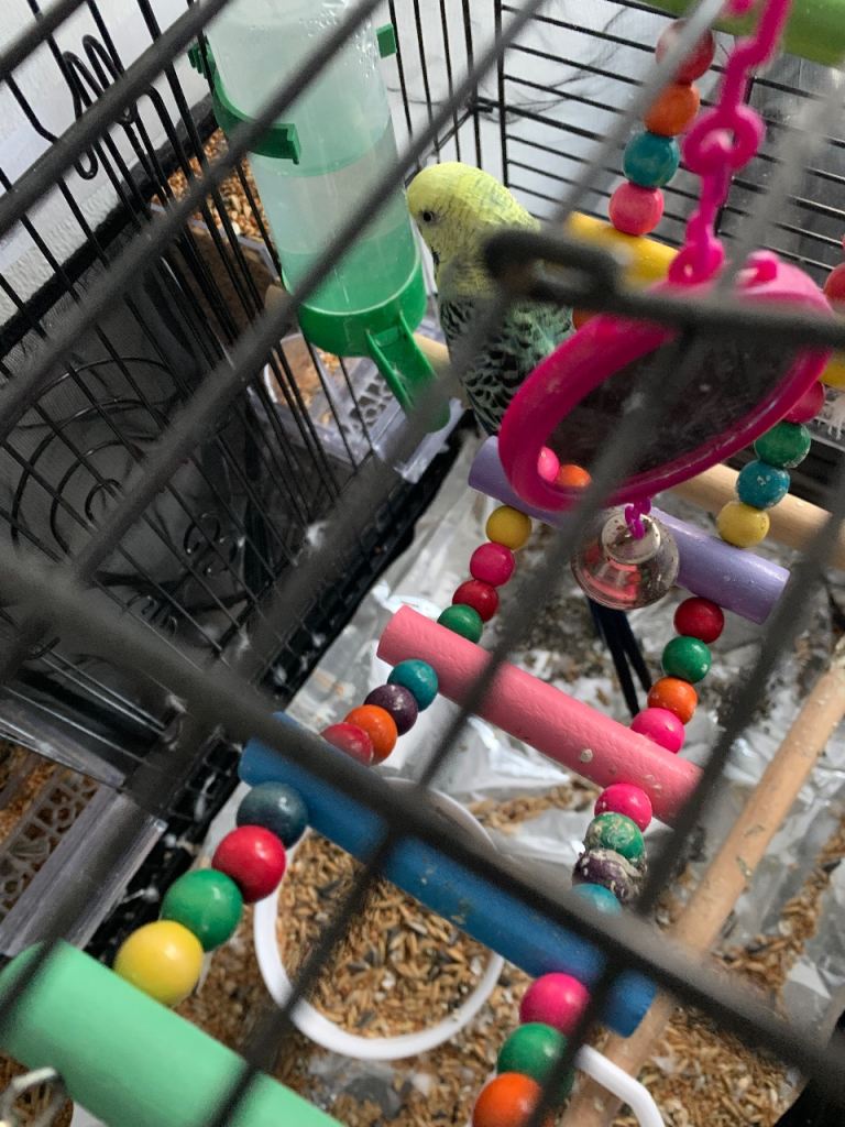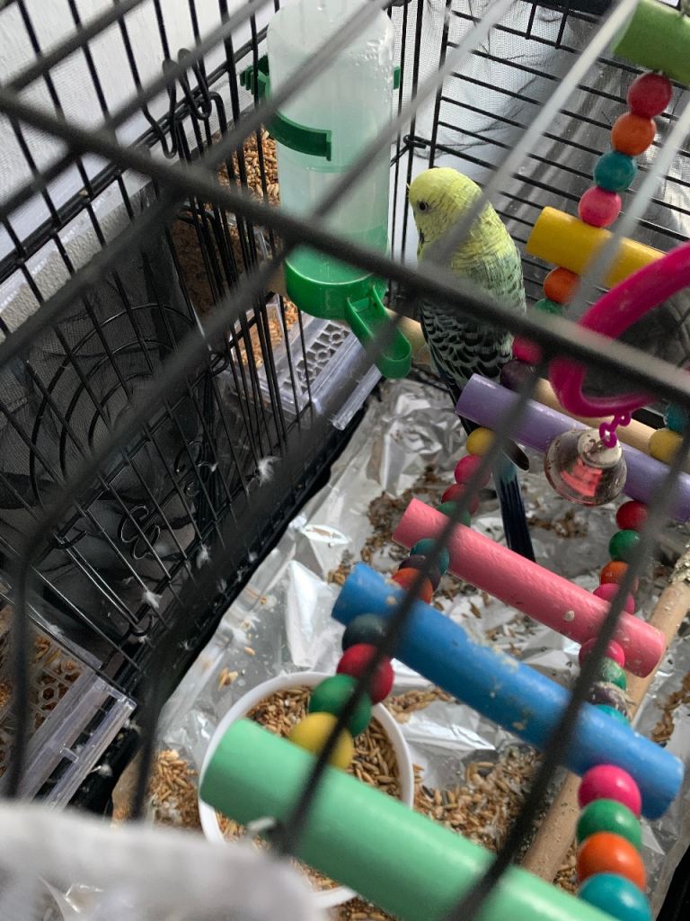 1.5 years old budgie is looking for its new home. It comes with the cage and all the accessories also with lots of food. You will be having everything in the photo