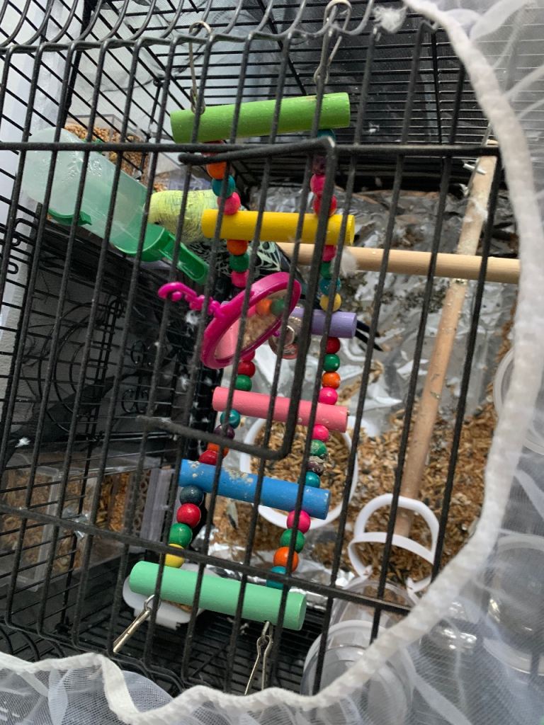 Budgie, cage and all the accessories