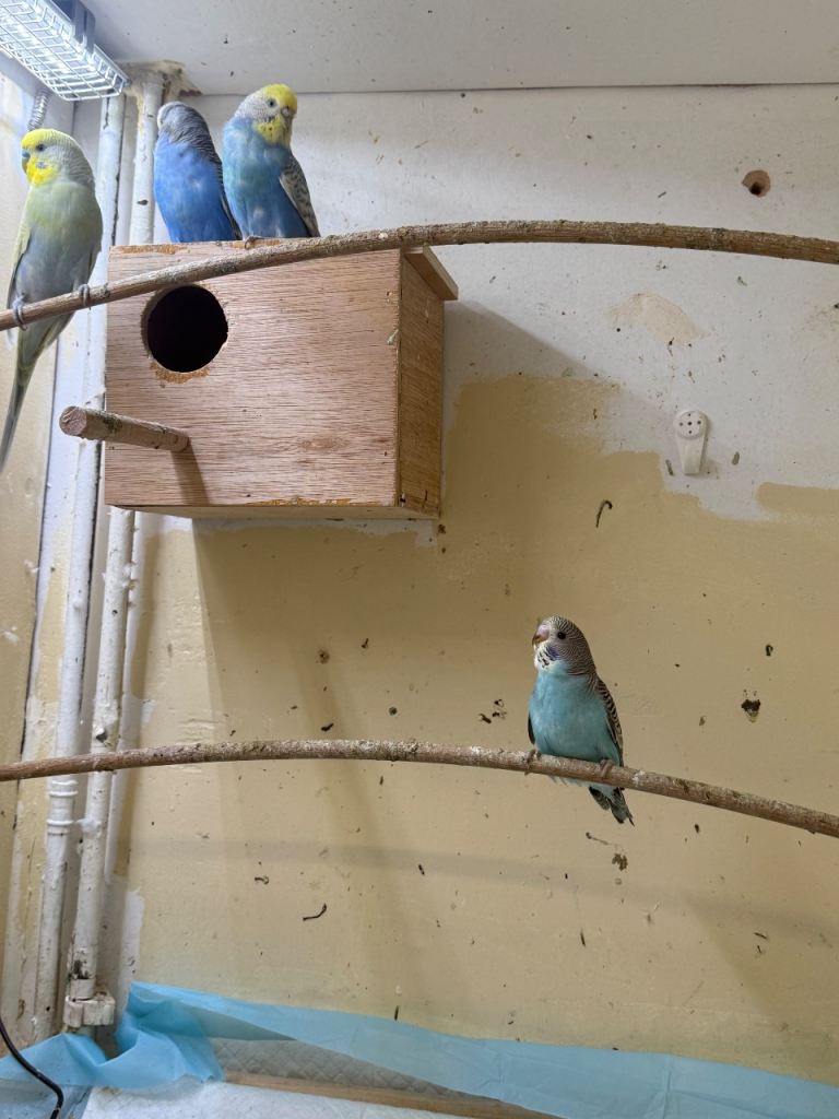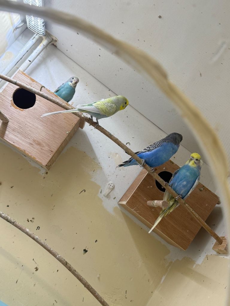 I have 4 adult budgies looking for a new home. Their ages are between 1 and 3 years old.