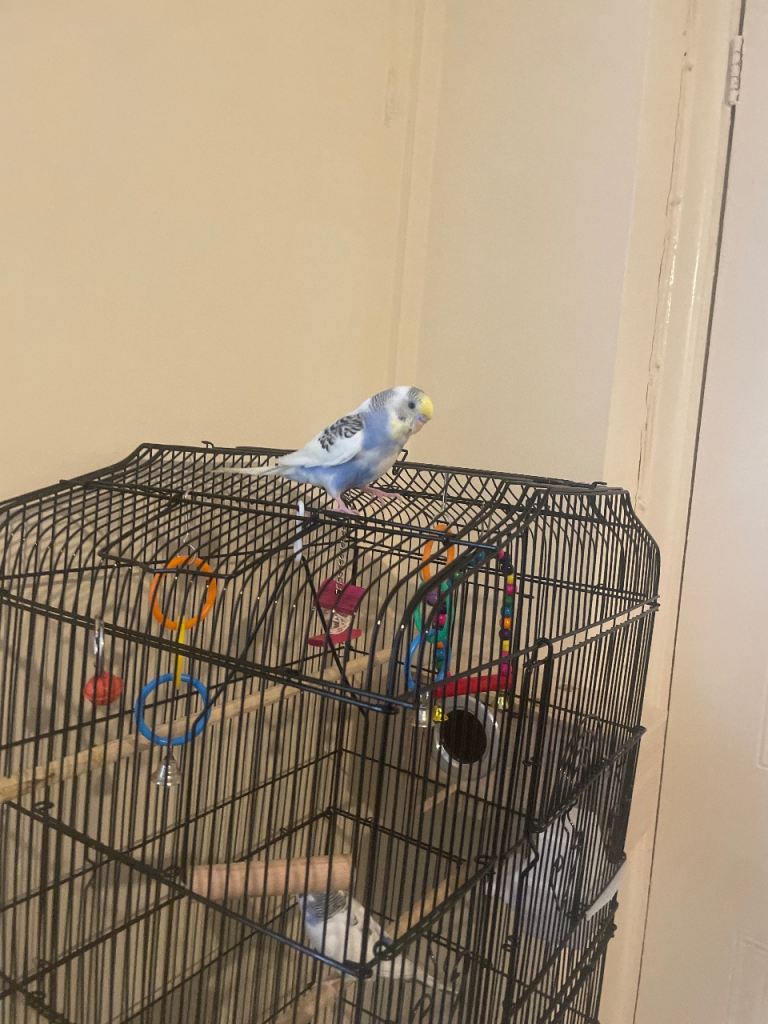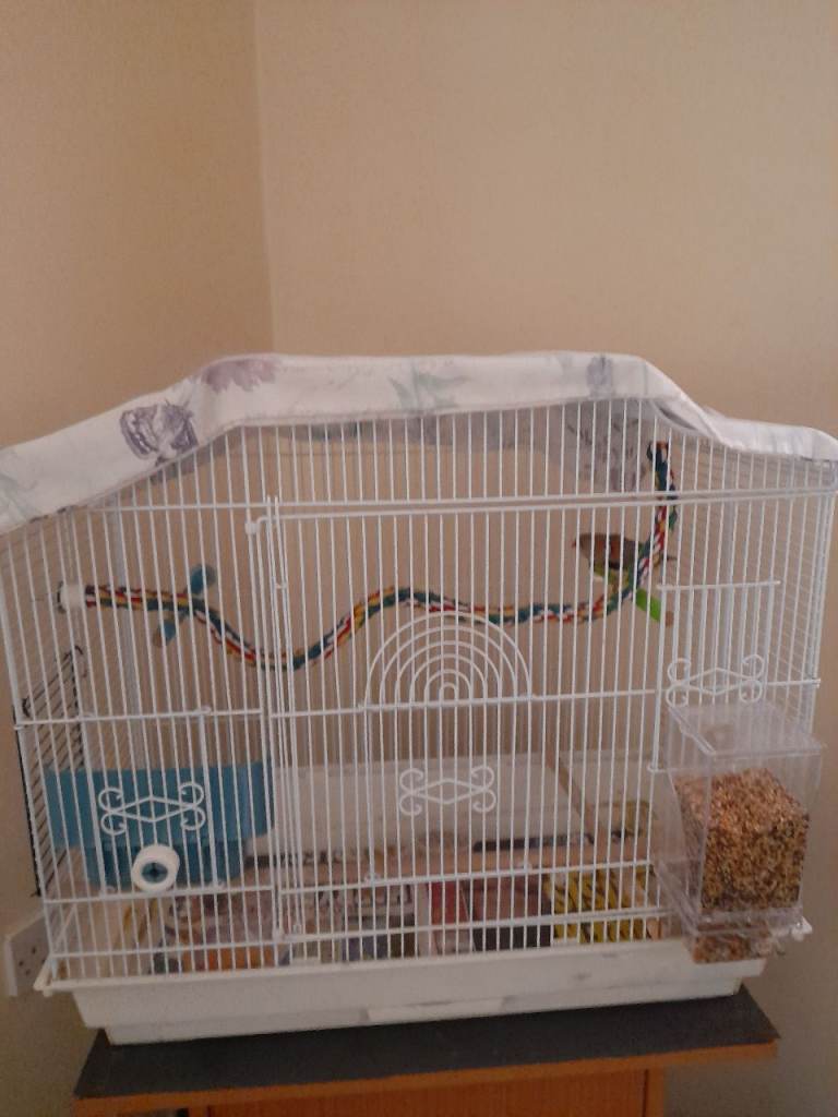 Posting for 2+ yearsBudgies, Cage, + Food + nest box attatched + toys