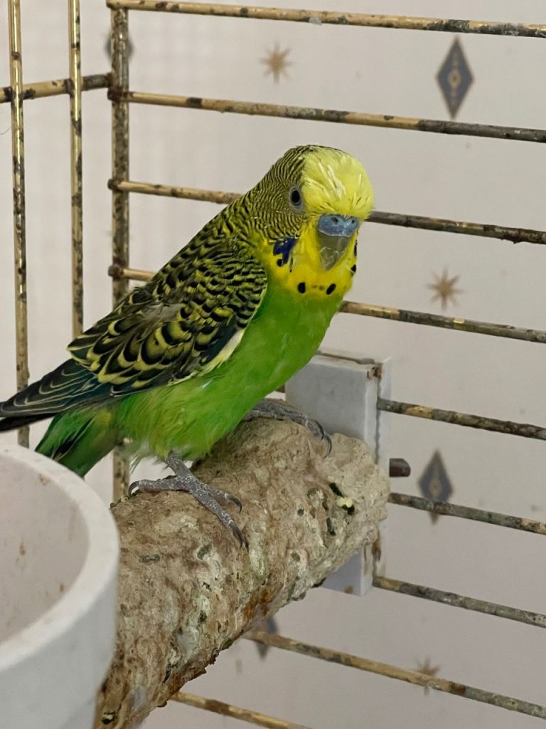 Two one female one male, beautiful colours, (blue white mix of yellow) Selling for 110. Can only be sold together, They are lovers. Energetic and playful, Includes toys and swings and bells for them to play with, budgie food, feeders, nesting box. Got them at a sale so unsure of their ages however they are really young.