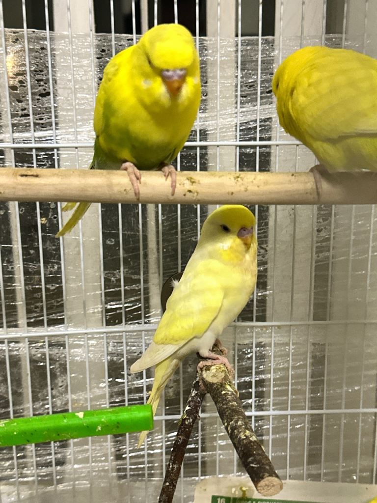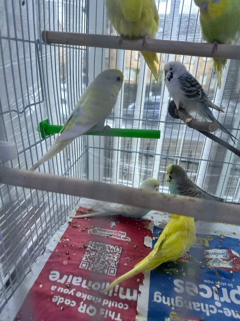 Budgies litino albino pied cobalt handtaim breeding pairs varies colours and breeds available single and pairs available budgies age is 3 months plus.budgies prices starts from £20 cages are extra £10 small £20 medium large £45 to £65 depending on which one you prefer call or text for more information