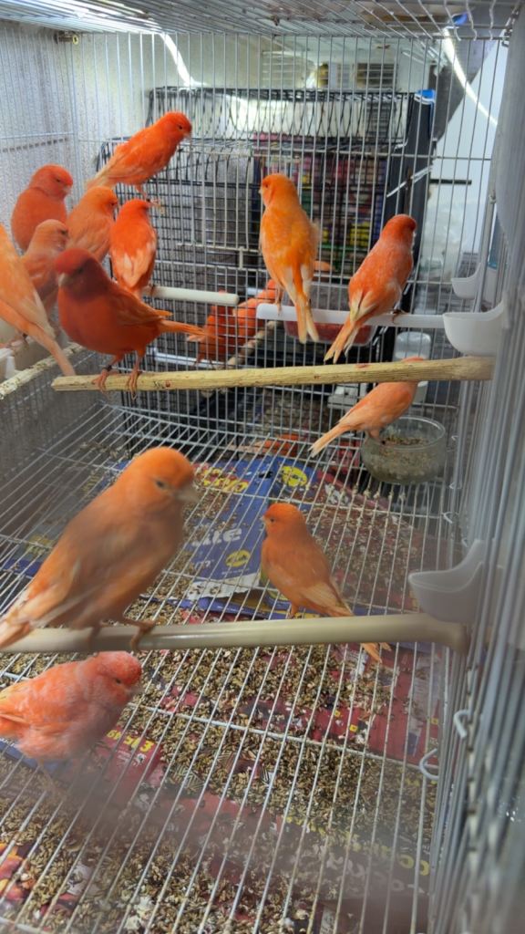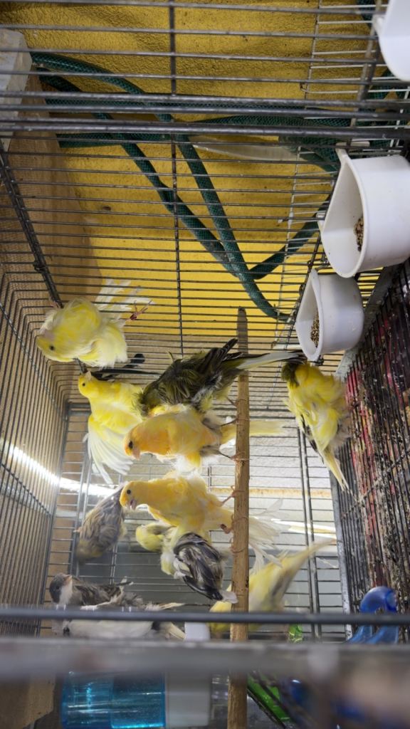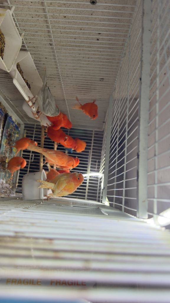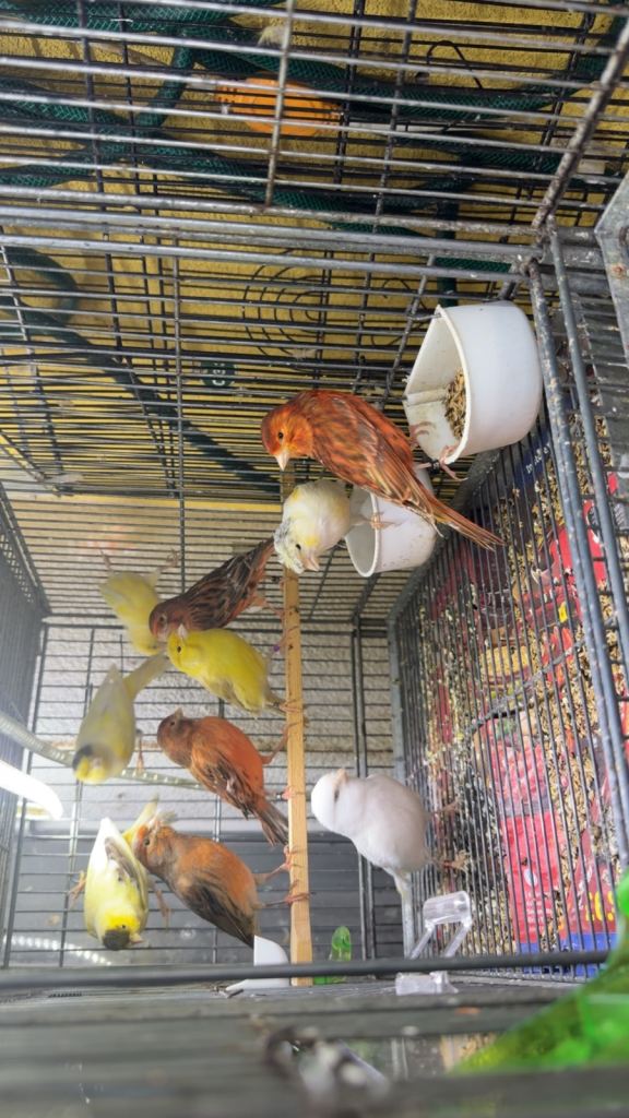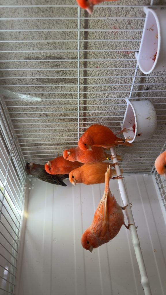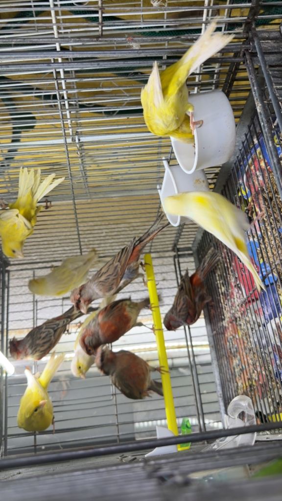 Healthy and active canaries.