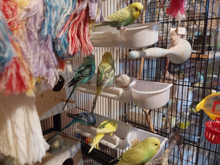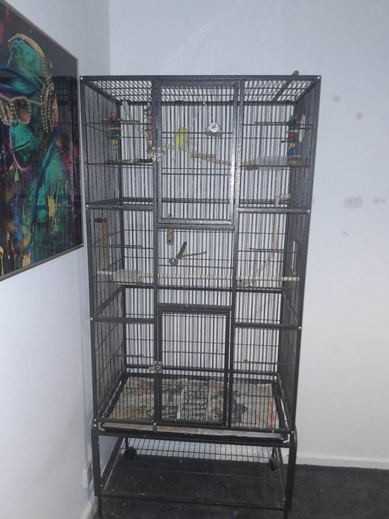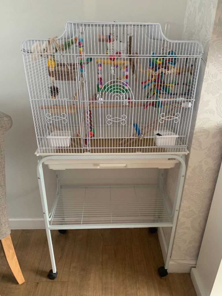 He will come with a fantastic cage, feeling bowl, water bowl and several toys, and any remaining food. A handmade coconut nest too!