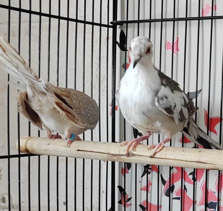 I have available 3 beautiful Diamond doves, these minature doves are very quite and peaceful birds so will live with any other peaceful birds. Lovely colours including pied.