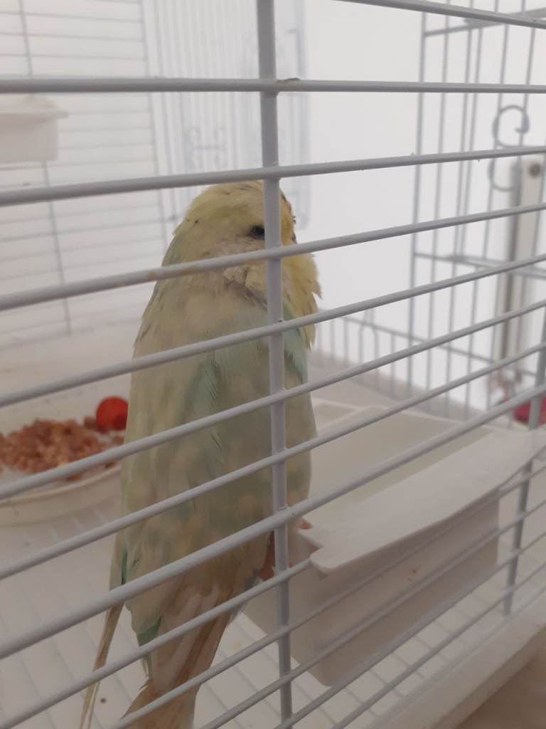 I have recently brought this budgie from a local pet shop , she looks like she needs some tlc , but she is a very quiet sweet bird with a lovely aura , sadly i don't think I have the time to give her what she needs as I have a toddler and i have come to find out they it's not the best mix.