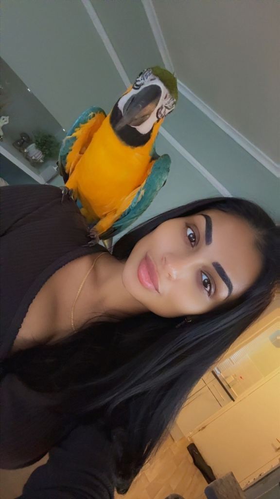 Mango is abit more devious and protective she’ll bond with usually one person. She’ll do big wings and nod her head when she’s happy. she steps up and a lot more tame to touch. Rio came from a bad home prior to coming to me hence he will take a little more time to build trust. His friendly and loves to be in his own space talking and laughing away.