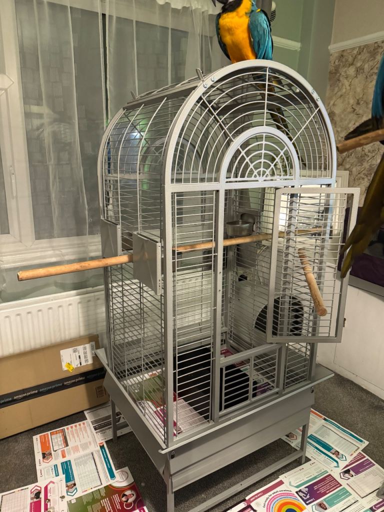 Need to rehome to someone with experience with large exotic birds and someone who will love them and give them a long and safe loving home as they live long as humans! They love going for walks and playing on the swings at the park and love watching to especially teletubies. They giggle to that.