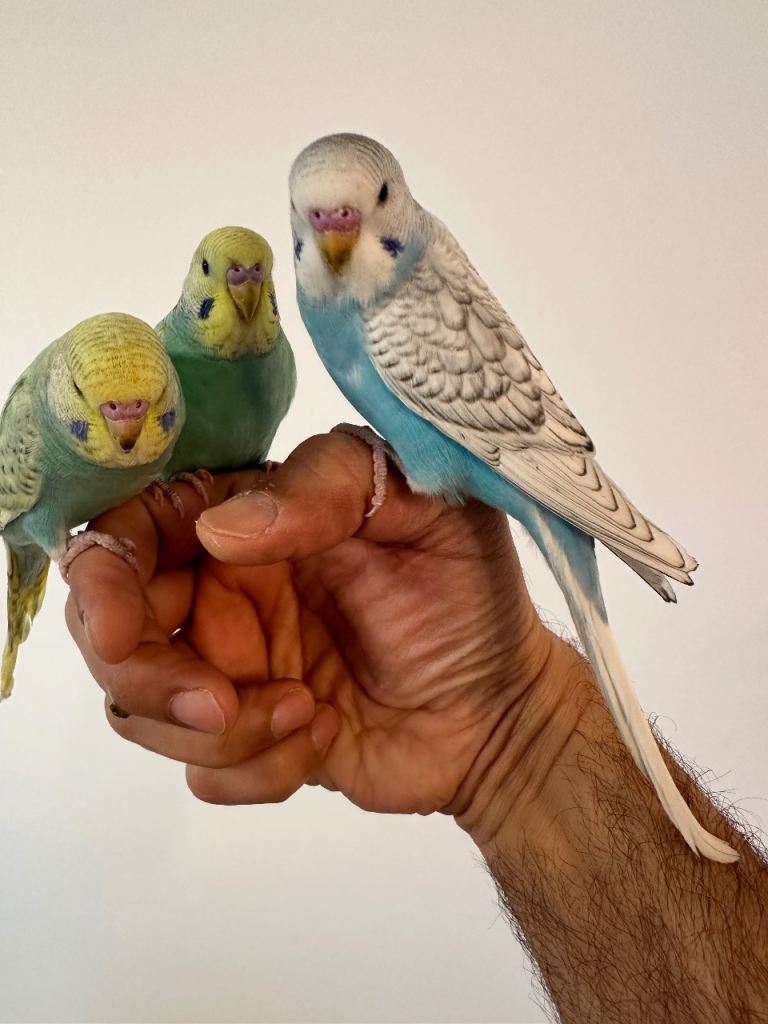 4 Young Boys Budgies. Comes to fingers and shoulders but need some time to get fully trained. Selling because i cant give them proper time. All are healthy and on good diet.