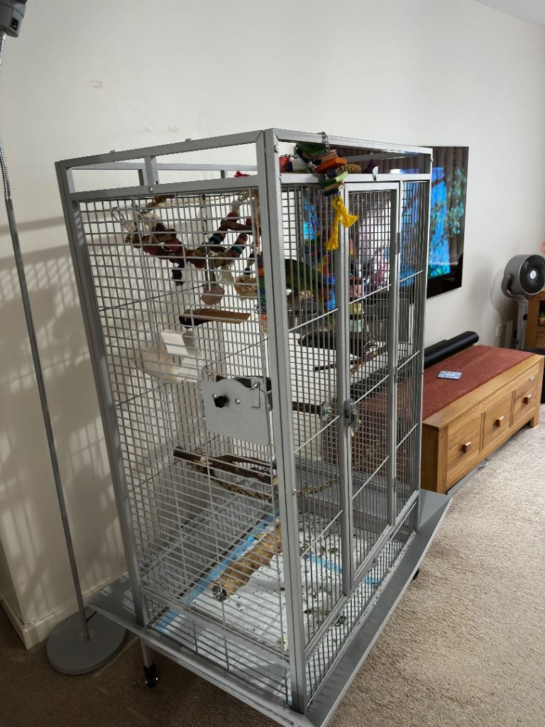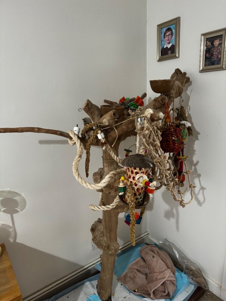 Large Rainforest Cage in stone finish plus Large Java Wood stand and toys