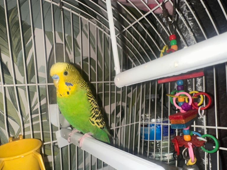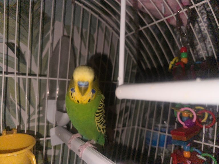 Bird comes with cage toys and food only selling due to my baby keep trying to touch iv taken care off this budgie with love so would like it to go to a caring home