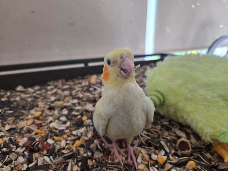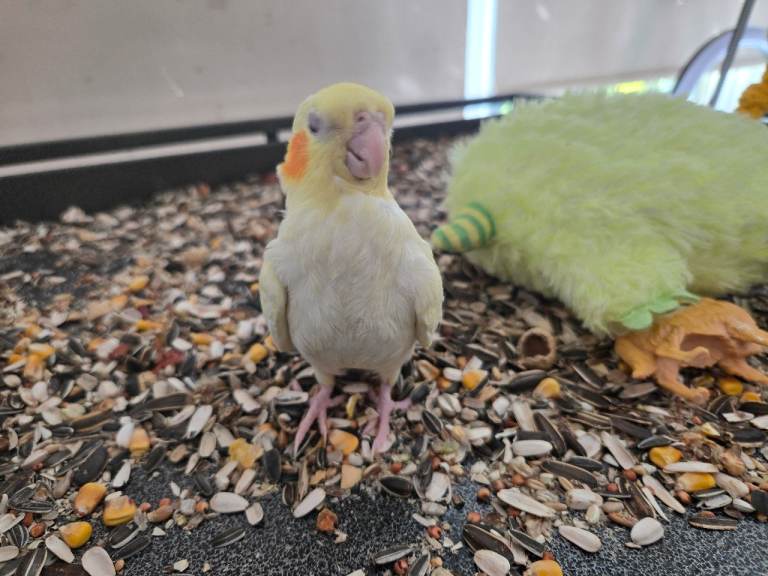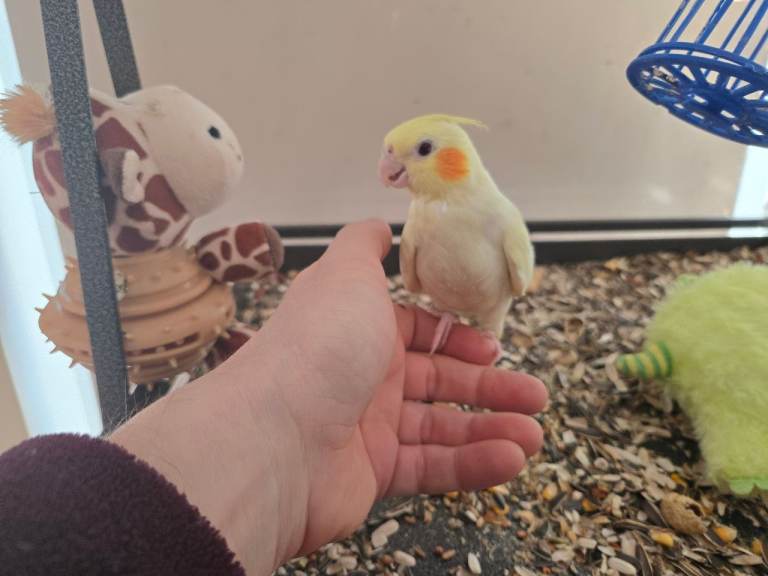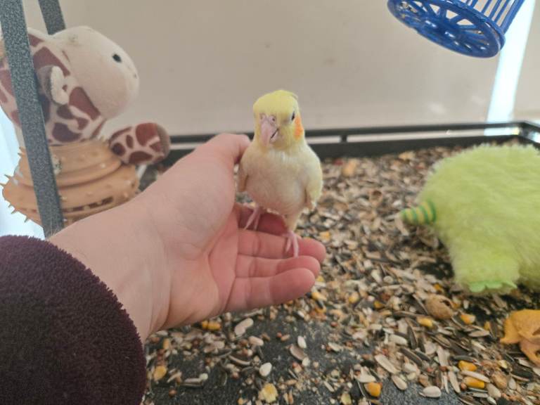Beautiful lutino cockatiel hand reared from an early age and raised indoors in a carefully managed family environment.