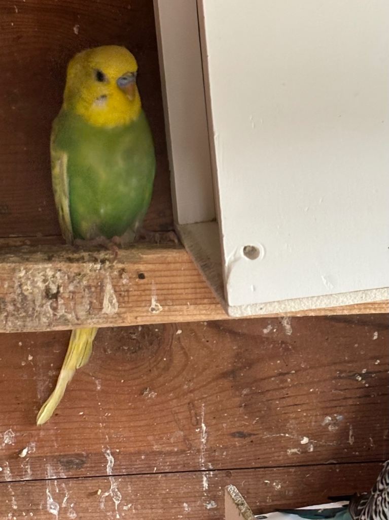 Posting for 12+ yearsMale Baby budgie for sale with starter cage