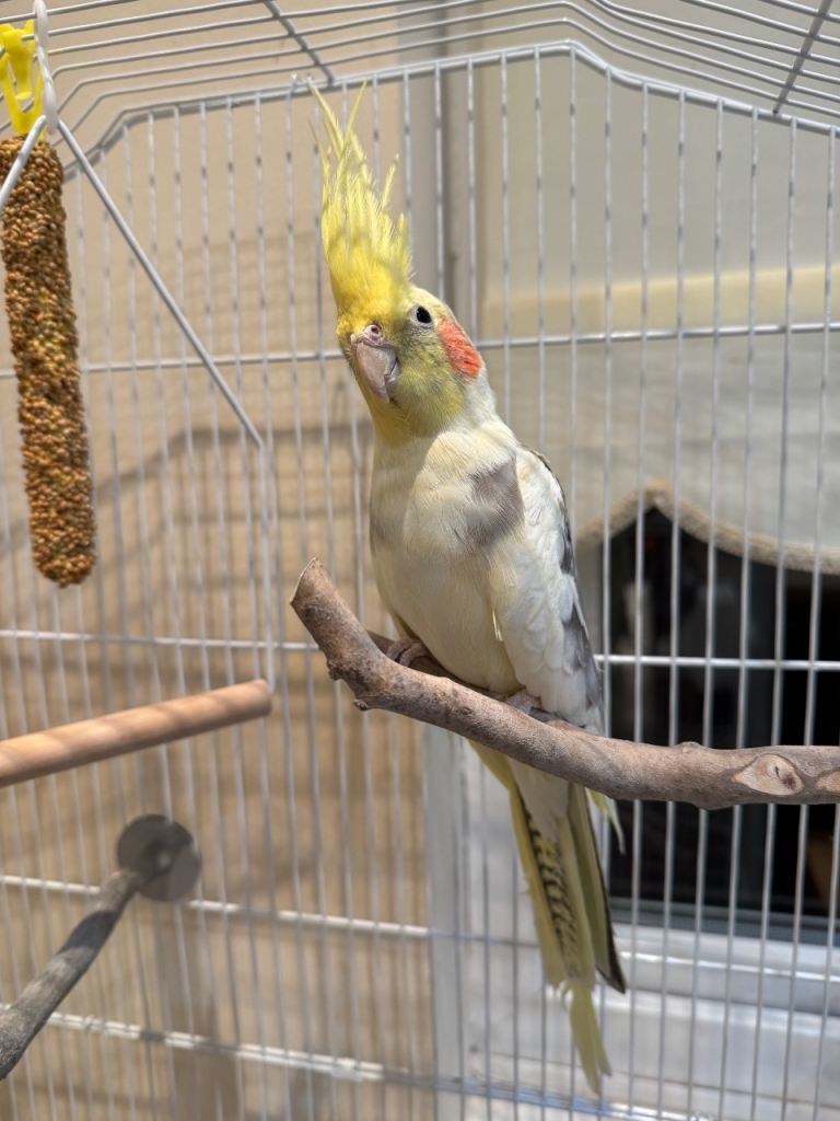 He has been hand-fed since month one and tamed. He likes to step onto your hand or head.