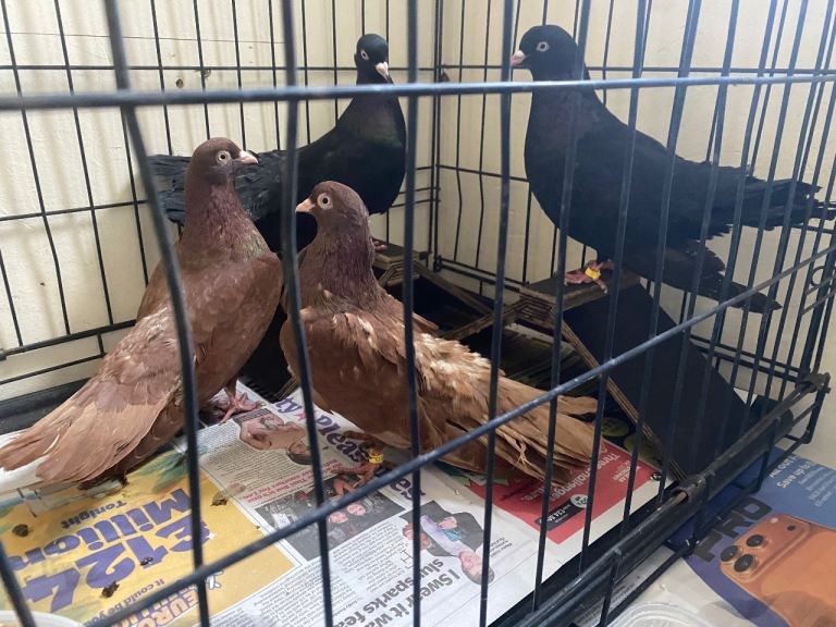 Hi for sale 4 oriental rollers 1 hen 3 cock birds £15 each or £50 the 4 or willing to swap for other pigeons message me if interested pickup London se6