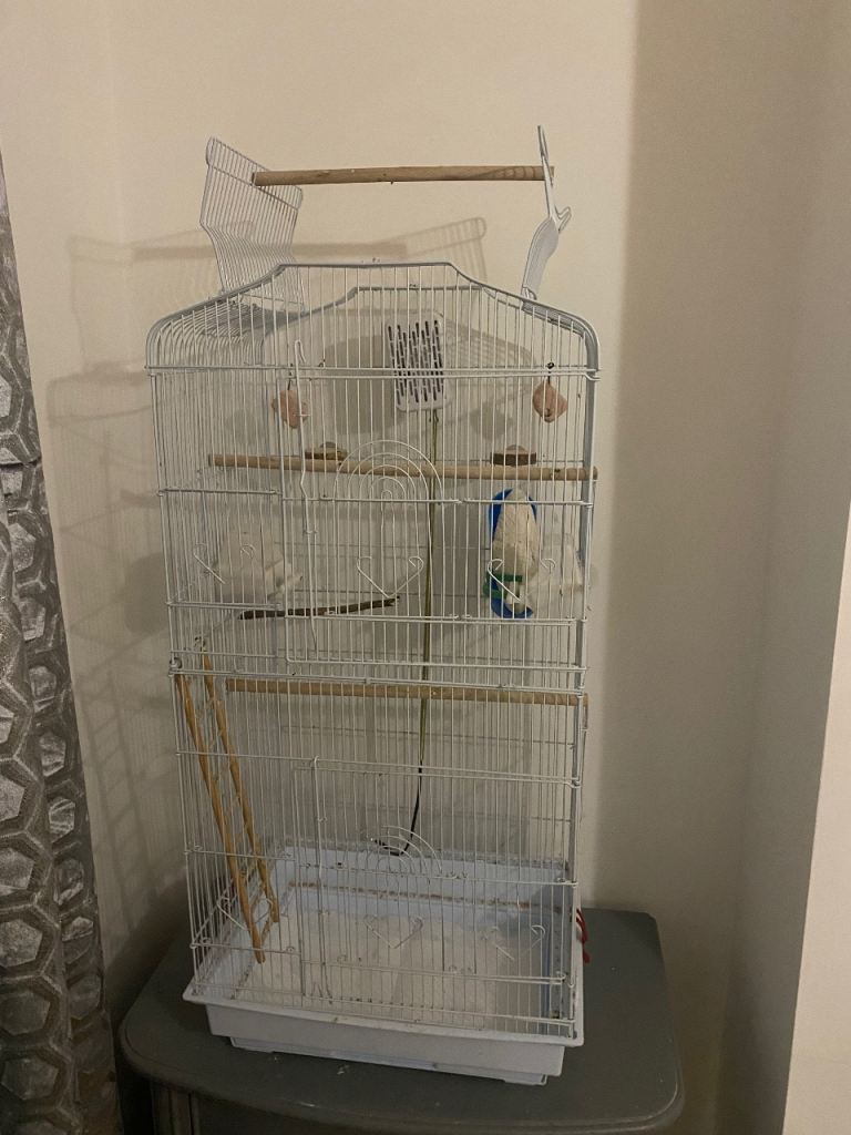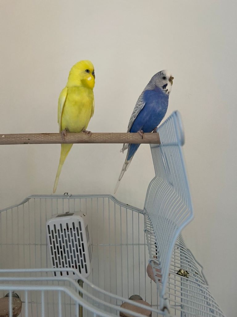 We are needing to find a new home for our two budgies. We don’t close the cage and they are used to sitting at the top of the open top cage and flying freely in our back room, so would be nice to know that whoever has them will try and allow similar or plenty of care free time and keep them together because they are very much in love ❤️. The yellow one is a male and the blue is female and both are two years old.