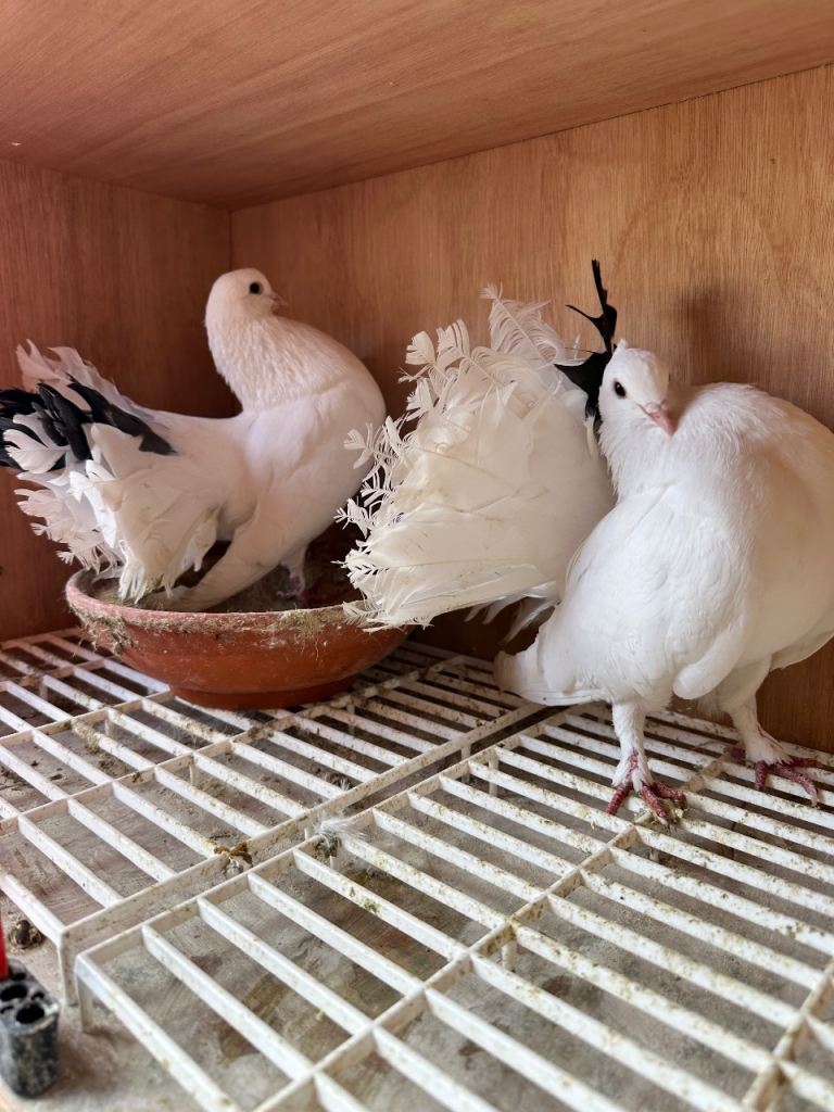 pair of show fantail pigeons. Very healthy birds.