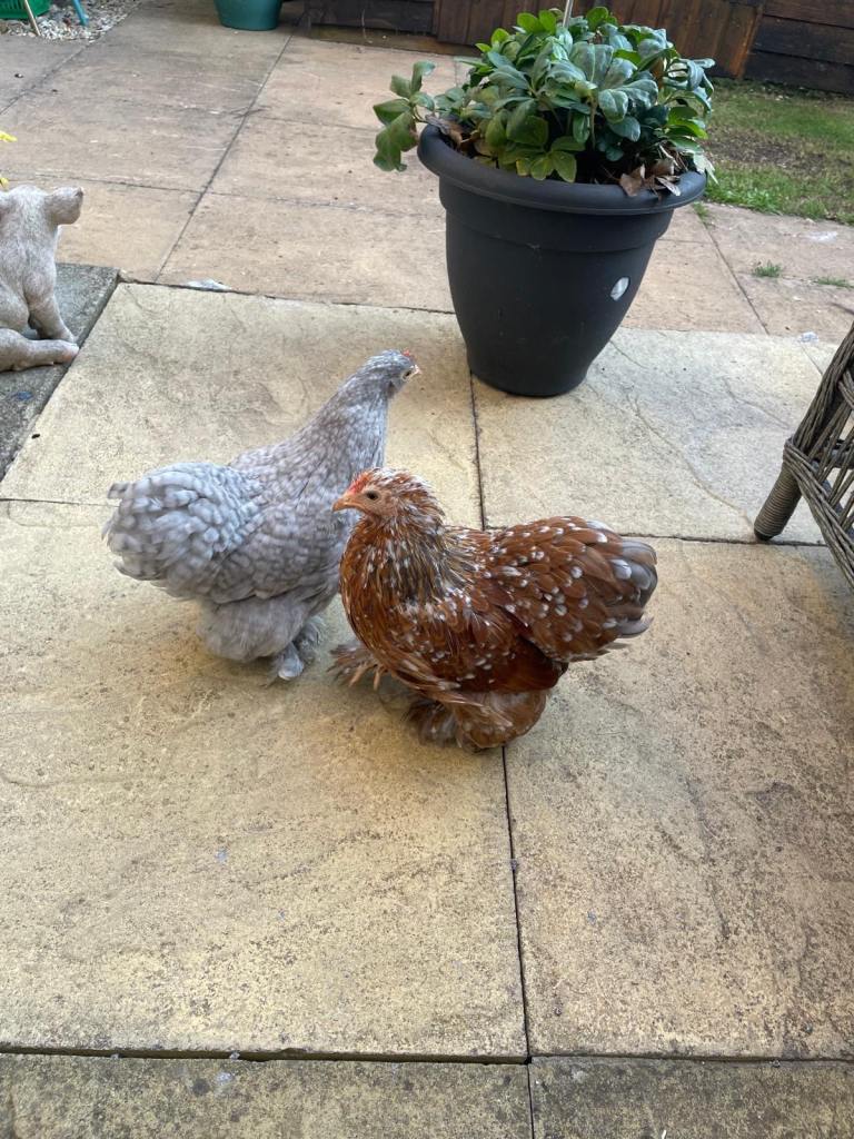 We have 2 Very tame female Pekin Bantams around 8 months old point of lay just started laying, Hutchh & Run Included ,Feeders only selling due to moving home not able to take them