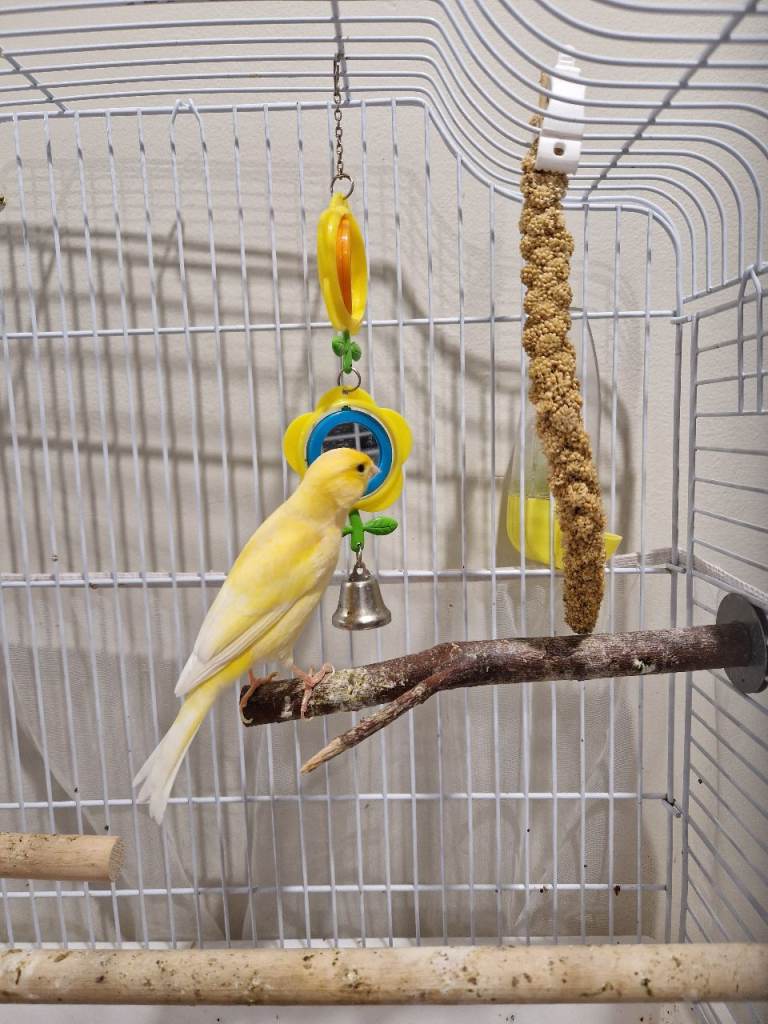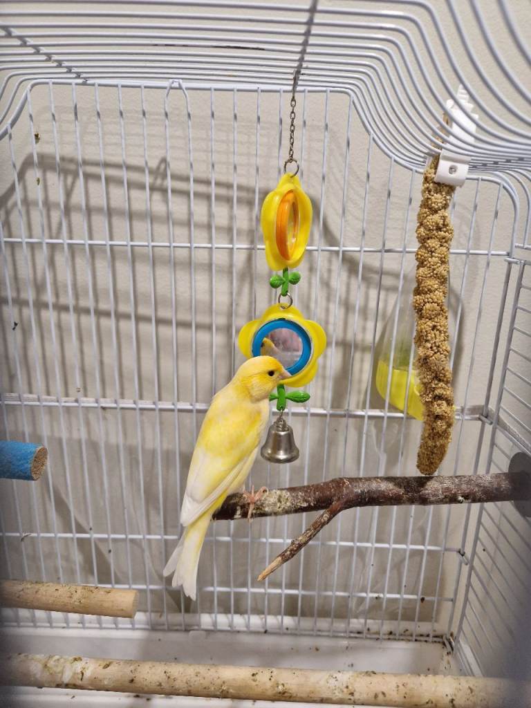 Posting for 14+ yearsSinging canary with cage, food and accessories bird