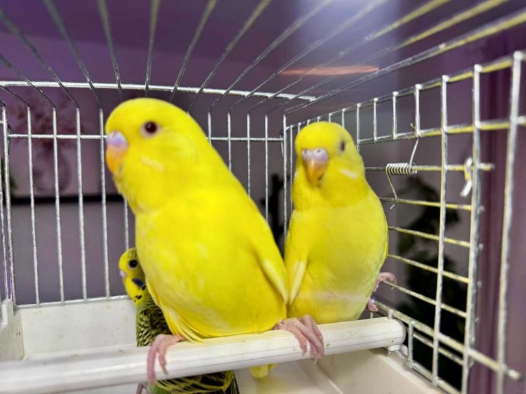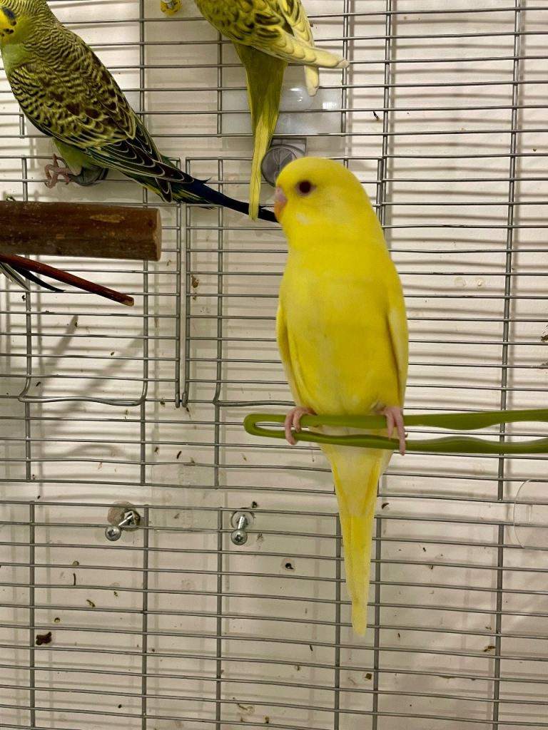 Posting for under a monthStunning Lutino & Spangle Budgies – 9 Weeks – Ready for a new home