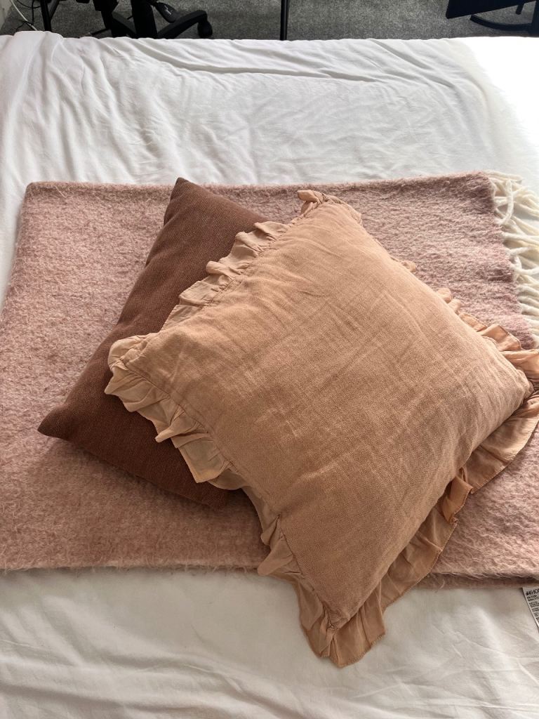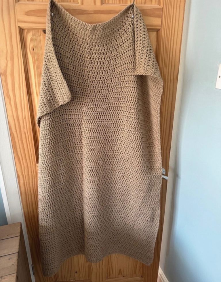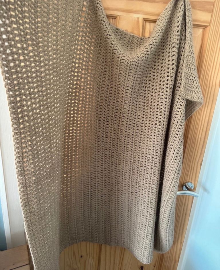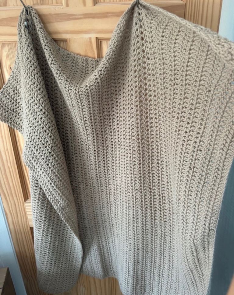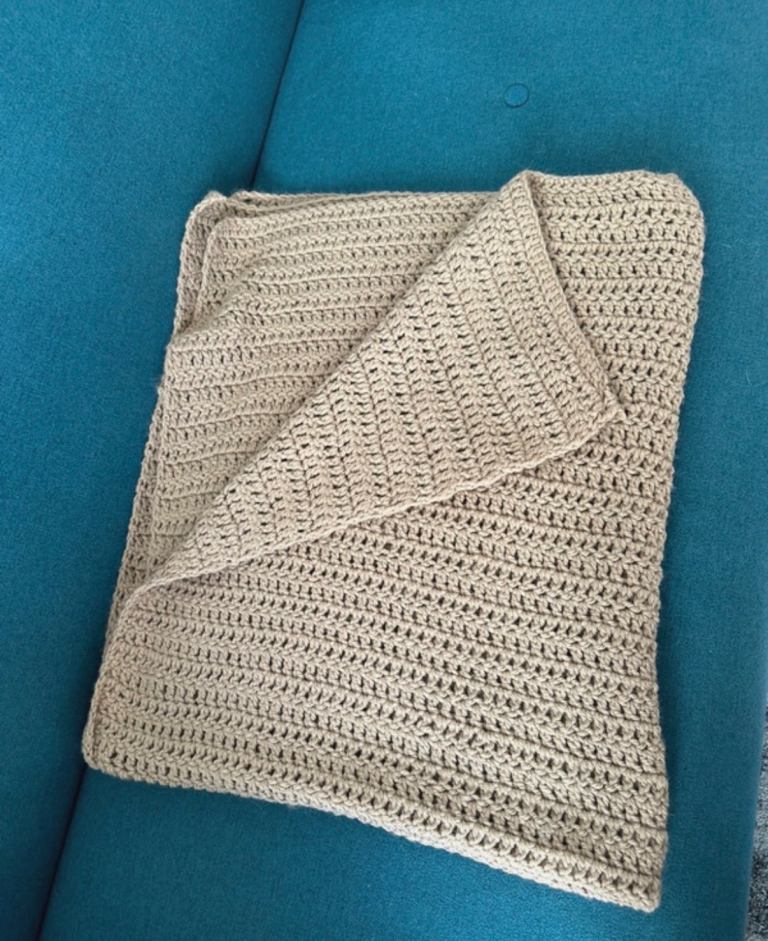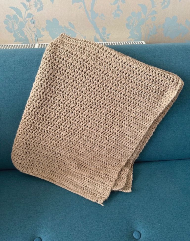 Beige Hand Knitted Throw 117cm x 130cm