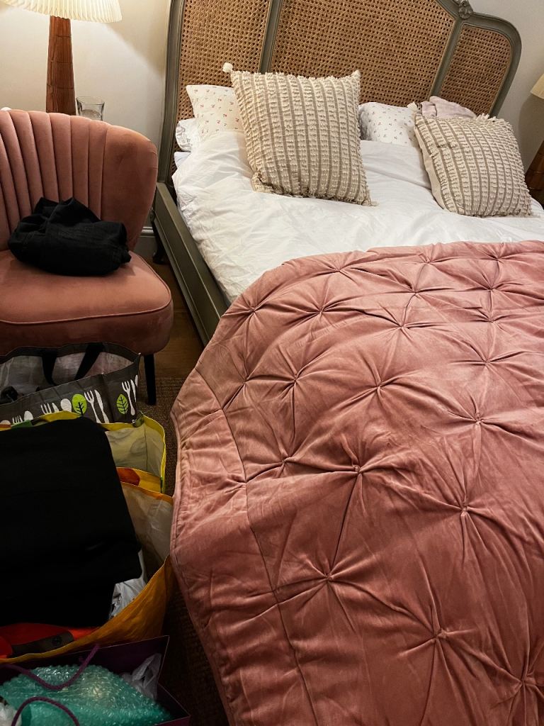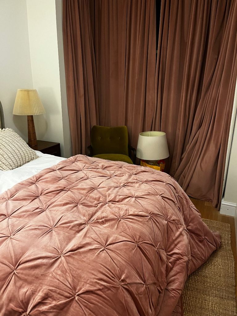 Lovely pink velvet throw, really luxurious and heavy weight.