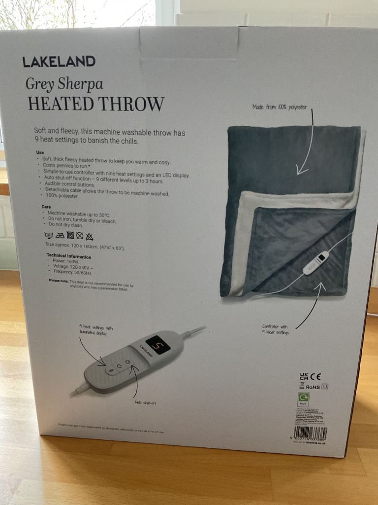 Lakeland Heated Grey Fleecy Throw - Unused