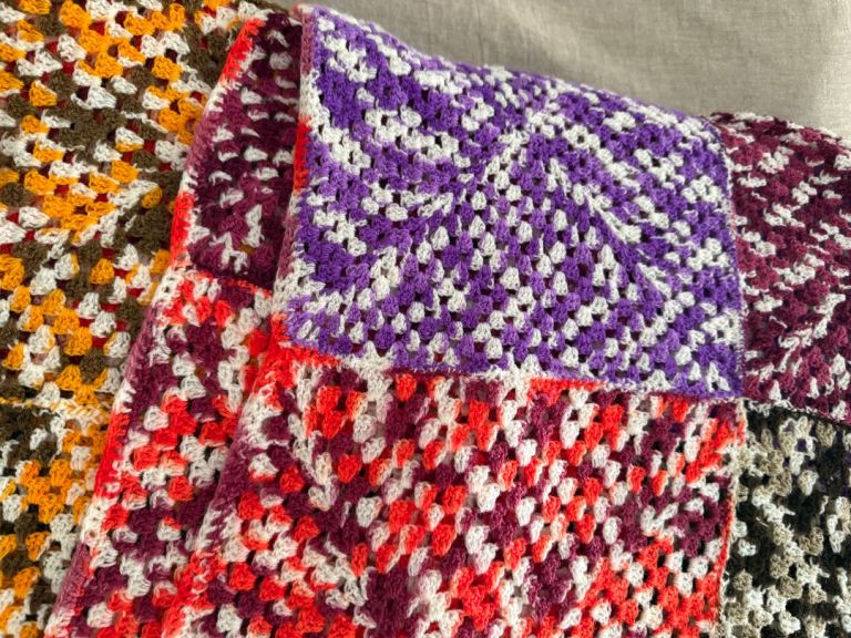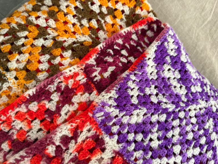VINTAGE RAINBOW CROCHET THROW - double size