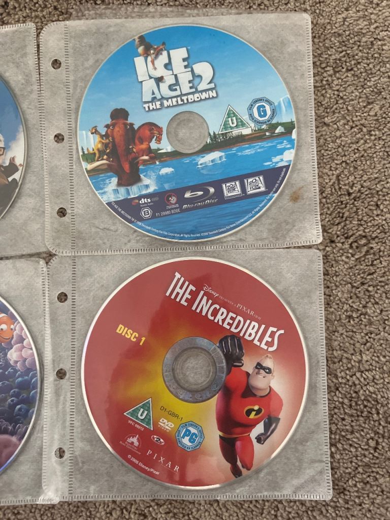 6 Blu Ray DVDs - Up, Cars, Ice Age, Madagascar, Nemo, The Incredibles