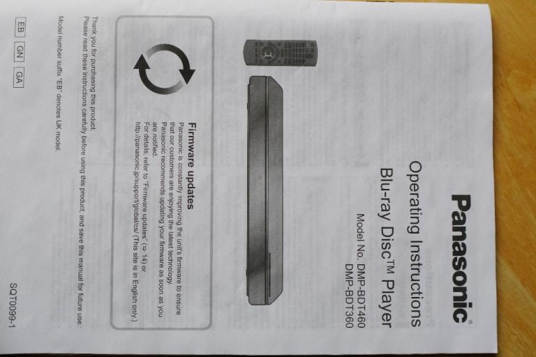 Panasonic Model DMP-BDT460 DMP-BDT360 Disc player plus handbook and remote all in good working order. Buyer can collect or pay postage.