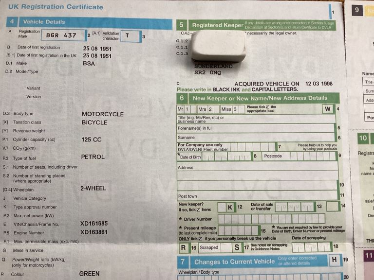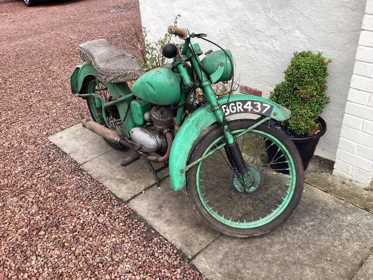 BSA BANTAM 125cc D1 *** 1951 *** 75 years old *** 100% complete *** Excellent Renovation Project *** I’ve owned this since 1998 bought from family of deceased owner who bought it new ********** ( 2 owners from new inc myself ) *** I’m now 70 years old and was always going to restore it but never got round to *** I had it running 10 years or so ago *** It retains its original Sunderland registration number which is BGR 437 *** currently offered for sale with Regtransfers at 3750 *** I’m moving shortly and clearing my garage where it’s been dry stored for decades *** This is part of our British Motorcycle History long before it was overtaken 1968/69 by the Japanese *** I will reluctantly let it go complete with it’s dateless number for 2000 *** if interested please do give me a call I’m in Sunderland *** Thank you for reading my long add ******* Alan ****** ********BLUE CHIP INVESTMENT *******