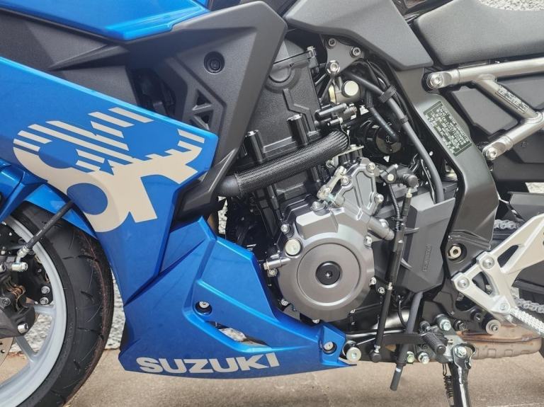 The design of the crankshaft also provides a power delivery, character, and rumble reminiscent of Suzuki' much-lauded V-twin ranges, while a patented cross balancer design ensures a smoothness, as well as aiding in a compact, lightweight engine design.