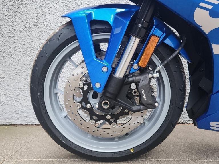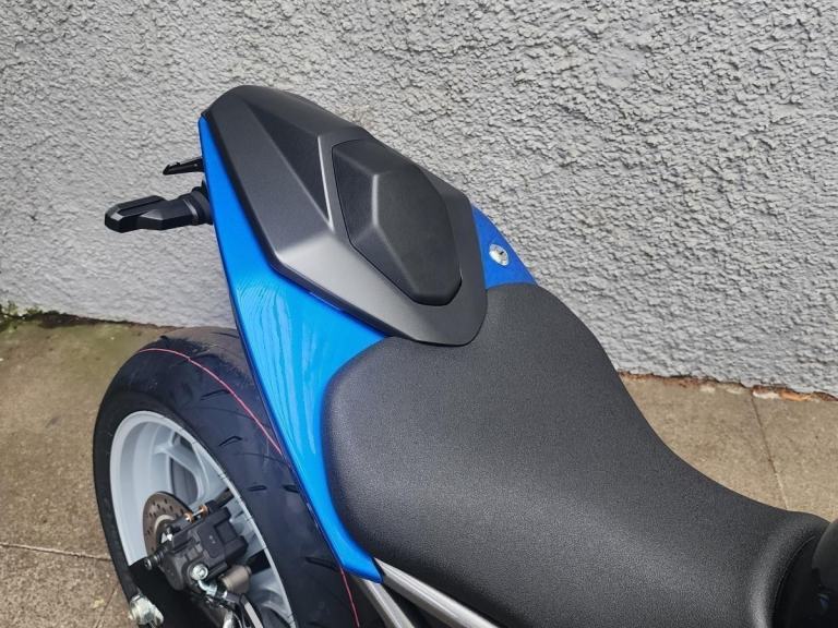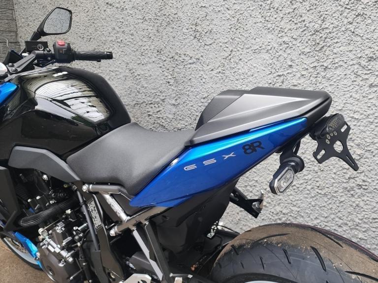 Immediately highlighting the R element of the new GSX-8R is its full fairing, wind tunnel-tested to increase aerodynamic performance and provide weather protection for the rider. Bold 8R logos adorn the side panels, while fairing-mounted mirrors also aid in reducing drag. Perched in the middle of the angular face is the recognisably GSX series stacked LED headlight, topped by an LED position light. The rear combination light is also full LED, as are the indicators.