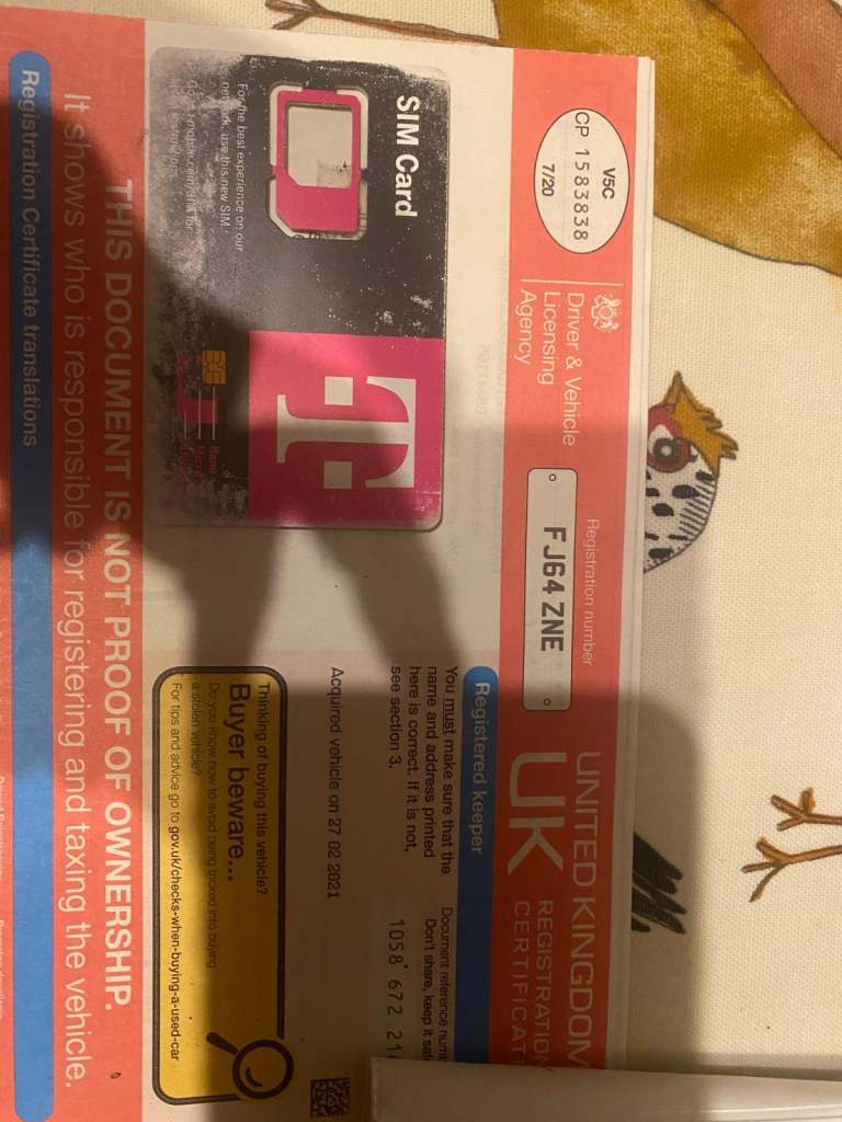 Registration document present and ready to transfer to the new owner
