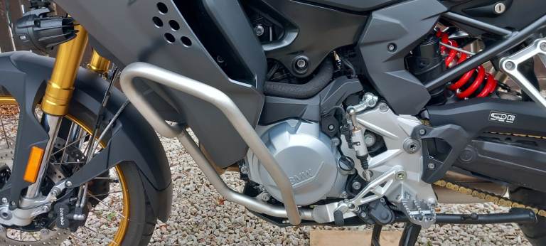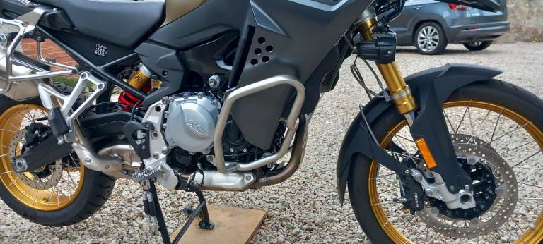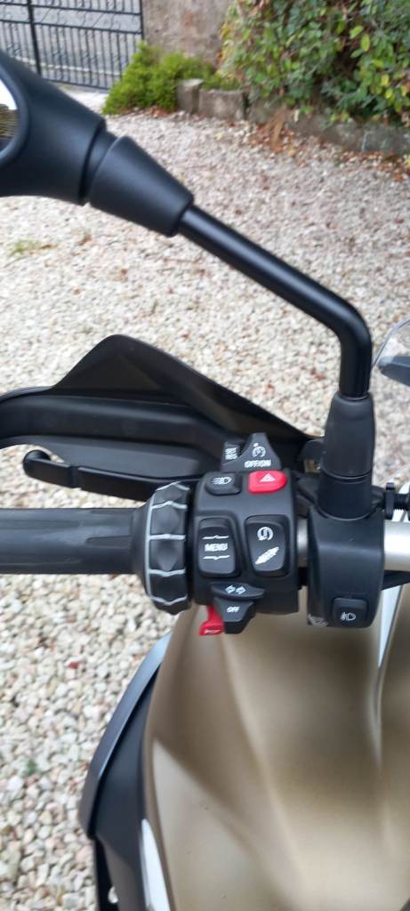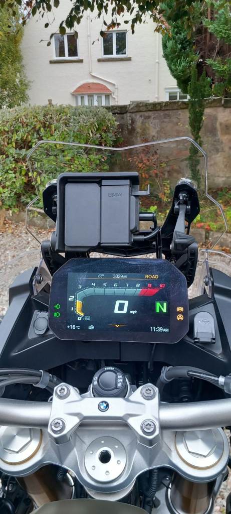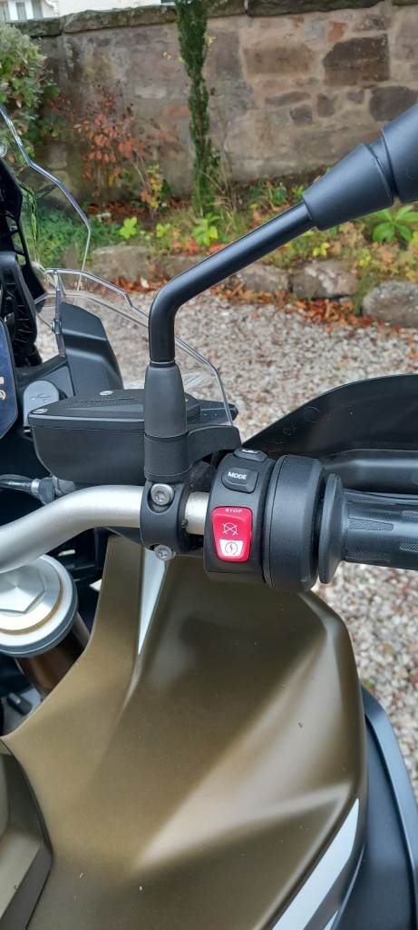 Five riding modes (two of these are off -road enduro) , Dynamic Traction Control (DTC) , Dynamic ESA, Keyless ride, Shift Assistant Pro, Driving Mode Pro, heated grips, cruise control, TMPS, M Endurance chain, LED spot lamps, engine bars, ABS Pro, LED self cancelling indicators, centre stand, BMW Connectivity, Rallye style seat , twin -height adjustable windscreen -this is adjustable by your left hand when on the move.