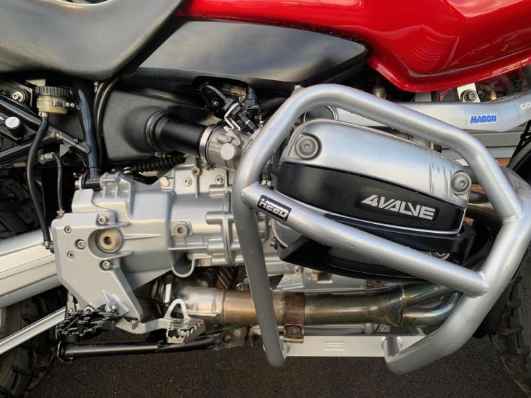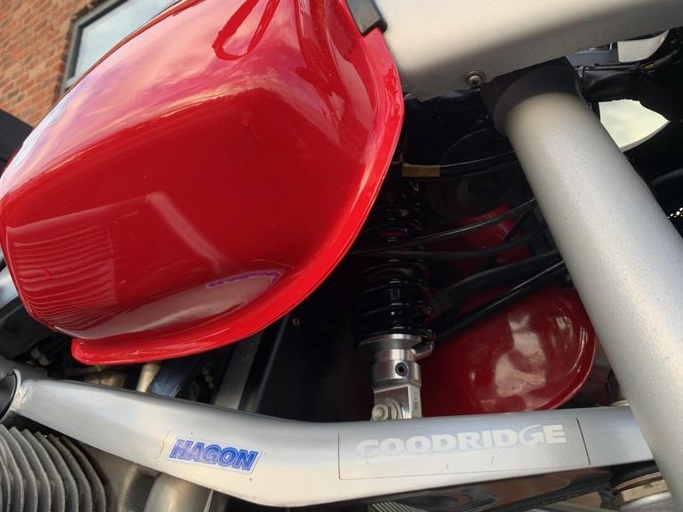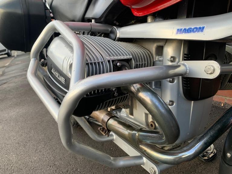 Fitted with front & rear Hagon suspension, genuine BMW panniers and top-box, and featuring the ABS system removed — a common and sensible upgrade on these models, eliminating a known source of issues.