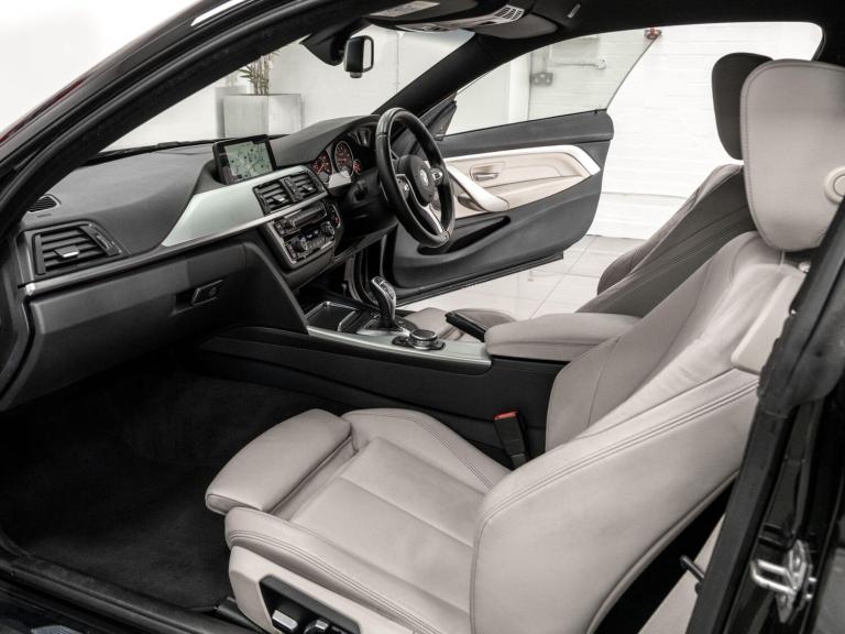 Presenting a Stunning Example of The BMW 440i Coupe 3.0 [Turbo-Charged] M-Sport Auto 326PS Model With The Complete M-Performance Exterior Body-Styling Pack. A Fully Loaded Example Comprising a High Specification With a Range of Desirable Options/Upgrades. Only 1 Former Owner From New; Same Recent Keeper For The Last 6.5 Years. Full BMW Main Dealer Service History Record Throughout. Freshly Serviced This Week at Our Service Centre. Long MOT Valid to January 2027; No Advisories. All Four Alloy Wheels in Immaculate Condition; Just Been Powder Coated. Premium Goodyear/Bridgestone Tyres All-Around. Undergone Our Specialist Multi-Stage Full Vehicle Detail. Fully Prepped and Ready To Go With Same Day Drive Away. Specification Includes: Sapphire Black Metallic Paint Finish, M-Sport Enhanced Body-Styling and Interior Design, High Gloss Shadowline Exterior Trim, 19” Double-Spoke 442M Alloy Wheels, M-Sport Plus Pack, M-Sport Blue Brake Calipers, M-Sport Suspension With Dynamic Stability, Xenon Auto-Levelling Headlights, LED Front/Rear Exterior Light With DRL, Rear Privacy Glass, Keyless Engine Start, Oyster Dakota Leather Interior, Fully Electric and Heated Front Seats With Driver Memory, M-Sport Multi-Function Leather Steering Wheel, Professional Wide-Screen Navigation System, Harman Kardon Sound System, Multi-Media Feat: DVD Rom+CD+MP3+USB+AUX, DAB Radio, Bluetooth Audio, Media Storage Hard Drive, Connected Services Drive, SatNav/Media Touch-Pad Controller, Cruise Control With Speed Limiter, Eco/Comfort/Sport Driving Modes, Ambience Interior Lights, Aluminium Inlays With Chrome Finishers, Split Folding Rear Seats and Lots More. For Absolute Peace of Mind, This Vehicle Includes The RAC Approved Buy-Sure Guarantee. Undergoing a Rigorous RAC 82 Point Inspection, It Comes With a 6-Month (Extendable) RAC Warranty & 12-Months RAC Roadside Cover. We Also Provide Low-Cost Finance Options, Welcome Part Exchanges, Accept Credit/Debit Cards, and Offer Reservations With a Small Deposit. Indoor Viewings By Appointment For Your Convenience