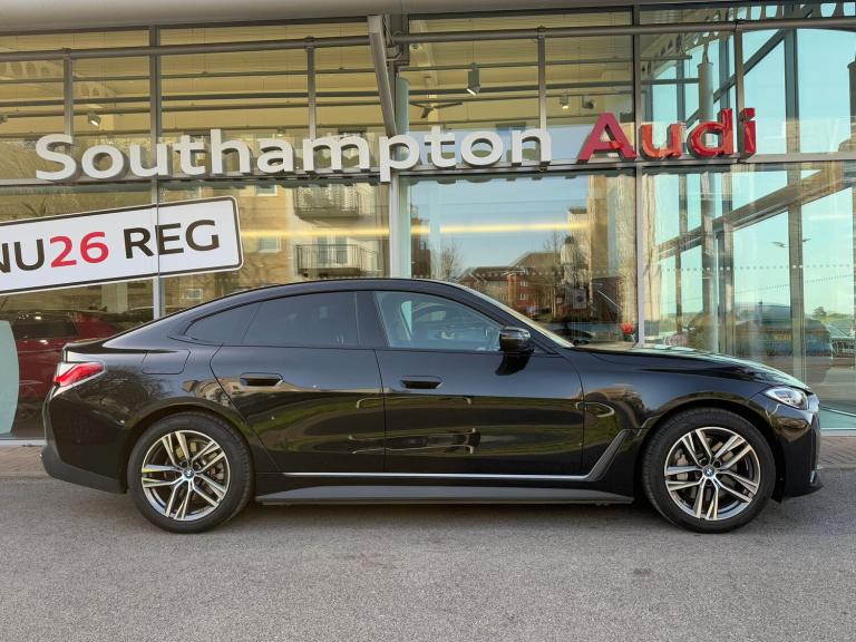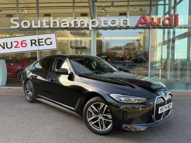 MANUFACTURERS WARRANTY, HARMAN/ KARDON SOUND SYSTEM, REAR VIEW CAMERA, HEATED FRONT SEATS, BMW CONNECTEDDRIVE ONLINE SERVICES, CONDITION BASED SERVICE, LIVE COCKPIT PLUS WITH NAV FUNCTION 12.3'' INSTRUMENT CLUSTER AND 14.9'' CENTRE DISPLAY, SMARTPHONE INTEGRATION, 1X USB TYPE A WITH DATA TRANSFER AND 1.5 AMP CHARGING FUNCTION IN THE CENTRE CONSOLE, 1X USB TYPE C WITH 3 AMP CHARGING FUNCTION IN THE FRONT CENTRE ARMREST, DAB TUNER, ELECTRIC ADJUSTABLE EXTERIOR MIRRORS, FRONT SPORT SEATS, ELECTROMECHANICAL PARKING BRAKE, HILL START ASSISTANT, ISOFIX CHILD SEAT MOUNTING ON REAR OUTER SEATS, SPORT GREY BRAKE CALIPERS, THIS COMES WITH THE MANUFACTURERS WARRANTY UNTIL 01/09/2027 AUDI SOUTHAMPTON ARE DELIGHTED TO OFFER THIS BMW I4 35 70.2KWH SPORT GRAN COUPE 5DR ELECTRIC AUTO EDRIVE (286 PS) IN BLACK WITH 13,594 MILES. WE ARE, PROUD TO BE PART OF THE HARWOODS TFSI CARBON BLACK SPORTBACK S TRONIC QUATTRO EURO 6 (S/S) 5DR ROUP, A FAMILY RUN BUSINESS ESTABLISHED IN 1931. WITH FOUR APPROVED AUDI RETAILERS WITHIN OUR GROUP, WE HAVE ACCESS TO OVER 400 VEHICLES. IF THIS ISN'T THE RIGHT CAR FOR YOU OUR GROUP STOCK HAS SPECIFICATION TO INCLUDE SUNROOF, LEATHER, HEATED SEATS, APPLE CAR PLAY, HEATED STEERING WHEEL, REVERSE CAMERA, REAR ENTERTAINMENT, TOWBAR, 360-DEGREE CAMERA, COMFORT & SOUND PACK, TECH PACK, PANORAMIC SUN ROOF, TOW BAR, BLACK PACK, AIR SUSPENSION, APPLE CARPLAY, ADAPTIVE CRUISE, MASSAGE SEATS, REFRIGERATOR, AWD, TECHNOLOGY PACK, HEAD UP DISPLAY, VORSPRUNG, TECHNIK, BLACK EDITION, S-LINE, S LINE, EDITION 1, TFSI, QUATTRO, SPORTBACK, LWB.? OTHER COLOUR OPTIONS INCLUDING BLACK, BLUE, GREEN, SILVER, WHITE, RED, GREY, YELLOW, ORANGE. INTERIOR OPTIONS OF EBONY, BLACK, IVORY, WHITE, TAN, CREAM, OYSTER, & EURO 6 ULEZ COMPLIANT DRIVE TRAINS.?
