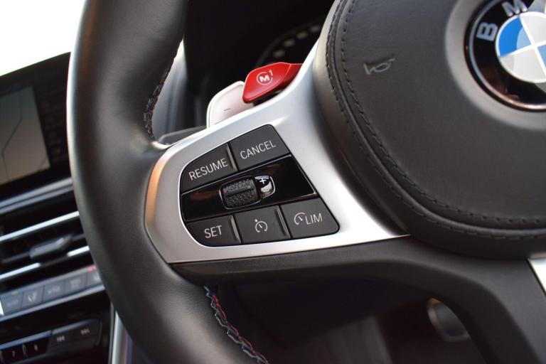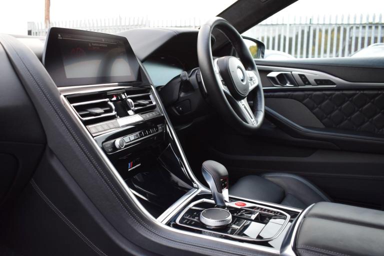 November 2021 BMW M8 4.4i V8 Competition Steptronic 4WD finished in Sapphire Black Metallic with full Black Merino leather interior. 19250 miles covered by two owners, supported with excellent BMW main dealer service history stored in the iDrive. This includes the all important running-in service and most recently serviced in April 2025 by Stephen James BMW Bromley leaving the next service not due until April 2027. Presented in fantastic condition inside out with excellently maintained bodywork, unblemished alloys and equally great interior. Supplied with all correct documentation, handbooks etc and subjected to our usual strict pre delivery inspection and preparation process ensuring all cosmetic and mechanical elements are in good order including matching Pirelli P Zero tyres with great tread. Excellent specification with options including 20in Alloy Wheels - M Light Star-Spoke Style 811 M Bicolour, Interior Trim - BMW Individual - Piano Black and the excellent Comfort Plus Package which includes features such as Ventilated/Heated/Cooled Front Seats, Heat Comfort System, Heated Arm Rests, Heated Steering Wheel and Soft Close Doors. Other specification highlights include: Adaptive M Suspension, Ambient Interior Lighting - Dynamic, BMW Live Cockpit Professional, Carbon Roof, Comfort Access System, Driving Assistant, Exterior Mirrors - Folding - Heated - Electrically Adjustable, Headlights - Adaptive LED, High-Beam Assistant, Keyless Start, Loudspeaker System - Harman Kardon, M Compound Brake - Red High Gloss, M Head-Up Display, M Sport Differential, M Sport Exhaust System, M Sport Seats, Parking Assistant Plus, Rear View Camera, Telephony with Wireless Charging, WiFi Hotspot and more.