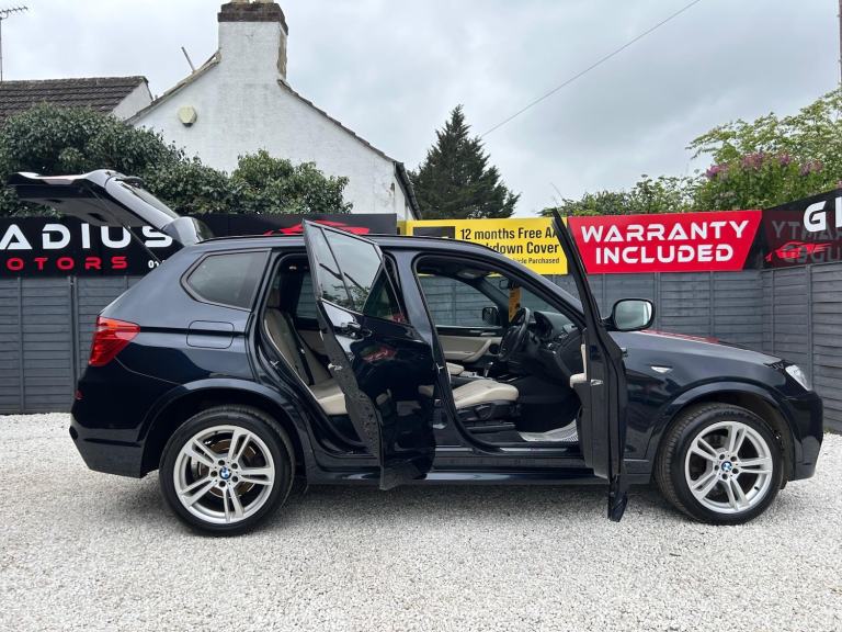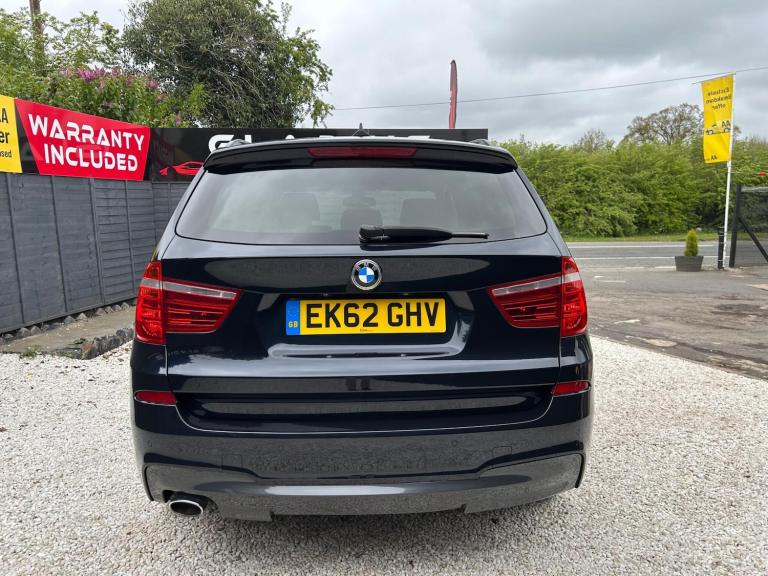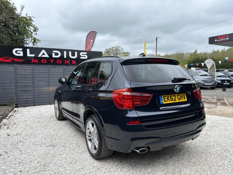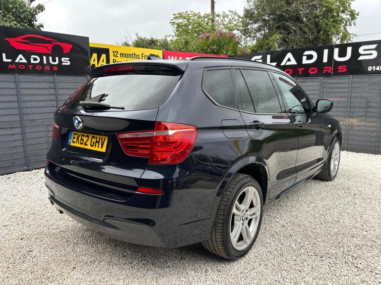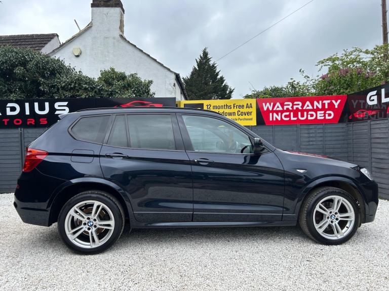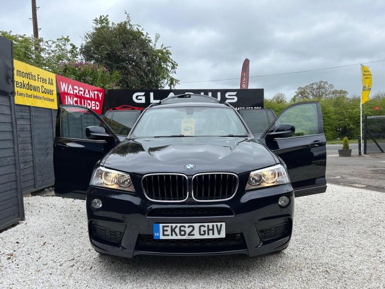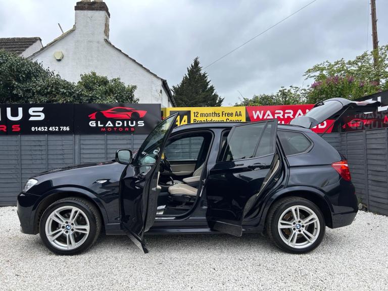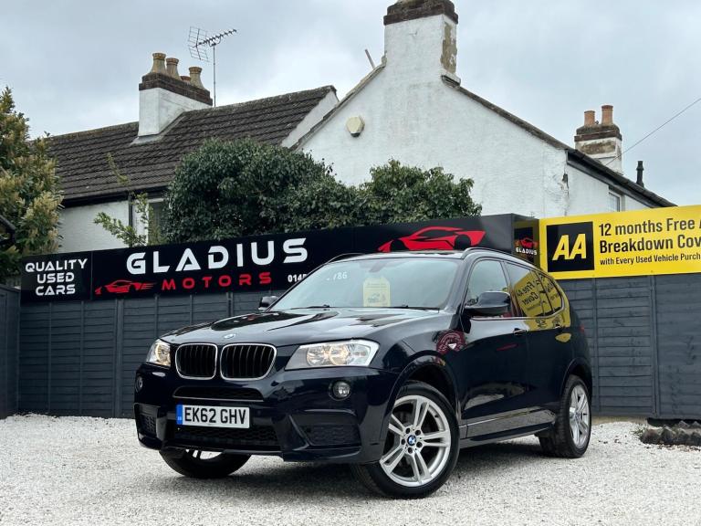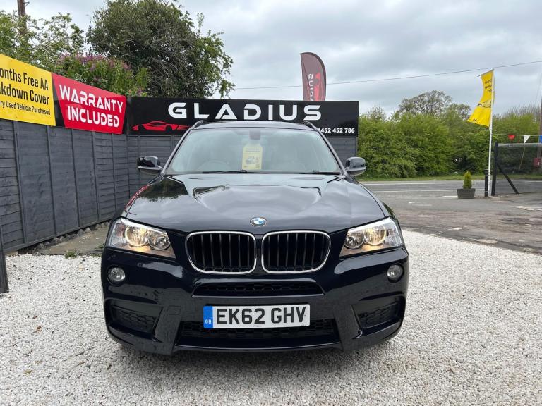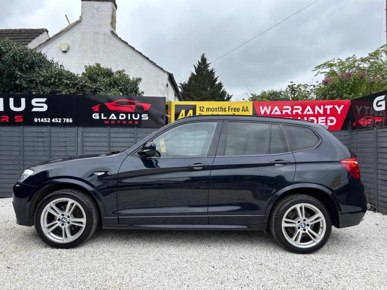 ***VIEWING BY APPOINTMENT ONLY***PART SERVICE HISTORY • JUST SERVICED • NEW REAR PADS • NEW FRONT SHOCK • NEW 12 MONTH MOT (NO ADVISORIES) • 3 MONTH NATIONWIDE WARRANTY INCLUDED • 12 MONTH AA BREAKDOWN COVER • FINANCE AVAILABLE FROM 12.9% APR • PART EXCHANGE WELCOMEWell presented 2012 BMW X3 2.0 20d M Sport Auto xDrive finished in black. A powerful and refined BMW SUV that combines performance, comfort and practicality with the added benefit of xDrive four-wheel drive.The vehicle comes with part service history and has been just serviced by us, along with new rear brake pads and a new front shock absorber fitted, and benefits from a fresh 12 month MOT with no advisories, so it is fully prepared and ready for its next owner.On the road the 2.0 diesel engine paired with the automatic gearbox delivers smooth and responsive performance, making it ideal for both everyday driving and long motorway journeys. The xDrive system provides excellent grip and stability in all driving conditions.Being the M Sport model, it comes very well equipped with full leather interior, heated seats, satellite navigation, front and rear parking sensors, climate control and 19-inch alloy wheels, offering a premium and sporty driving experience.Supplied with two keys and fully inspected, prepared and road tested before sale.Overall this is a well maintained and capable SUV that offers strong performance, comfort and excellent value.All vehicles are carefully prepared prior to sale and we welcome any inspection or test drive so you can be completely satisfied.We are proud to be a 5-star rated AA Approved Dealer, giving you additional confidence when buying from us.Please note this is a used vehicle and light age-related marks may be present consistent with age and mileage.Call 01452 452786 to arrange a viewing by appointment.
