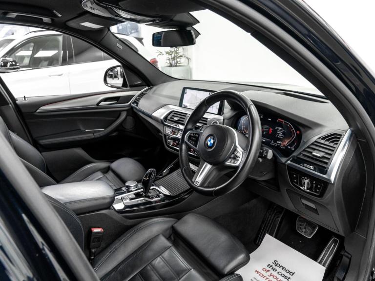 Presenting a Stunning Example of The X3 20D MHT [Diesel-Hybrid] 2.0 M-Sport Auto xDrive 190PS Model With The X3M Exterior Body-Styling Kit. A Fully Loaded Example Comprising a High Specification With a Range of Desirable Options/Upgrades. Only 1 Owner From New. Covered a Low 42,300 Miles. Full BMW Main Dealer Service History Record. Freshly Serviced This Week at Our Service Centre. Long MOT Valid to January 2027; No Advisories. All Four Alloy Wheels in Excellent Condition. Undergone Our Specialist Multi-Stage Full Vehicle Detail. Fully Prepped and Ready To Go With Same Day Drive Away. Specification Includes: Carbon Black Metallic, M-Sport Enhanced Body-Styling and Interior Design, X3M Exterior Body-Styling Kit, Upgraded X3M Design Quad-Tips Exhaust, High Gloss Shadowline Exterior Trim, 21” Double-Spoke 726M Alloy Wheels in Bi-Colour, Technology Package, Professional 12” Virtual Cockpit, Head-Up Display, LED Auto-Levelling Headlights With DRL, LED Rear Lights, Parking Assistant, Auto Self-Parking System, Rear View Parking Camera With Front/Rear Sensors, Active Guard, Attentiveness Assistant, Rear Privacy Glass, Keyless Engine Start, Black Vernasca Leather Interior With M-Sport Seats, Heated Front Seats With Electric Driver Bolsters, M-Sport Multi-Function Steering Wheel, Professional Touch-Screen Navigation System, Apple Car Play/Android Auto/Screen Mirroring, Wireless Charging Pad, Harman Kardon Sound System, DAB Radio, Bluetooth Audio, Connected Services Drive, SatNav/Media Touch-Pad Controller, Eco/Comfort/Sport Driving Modes, Electric Tailgate, Electric Folding Door Mirrors, Multi-Colour Ambience Interior Lights, 40-20-40 Split Folding Rear Seats and Lots More. For Absolute Peace of Mind, This Vehicle Includes The RAC Approved Buy-Sure Guarantee. Undergoing a Rigorous RAC 82 Point Inspection, It Comes With a 6-Month (Extendable) RAC Warranty & 12-Months RAC Roadside Cover. We Also Provide Low-Cost Finance Options, Welcome Part Exchanges, Accept Credit/Debit Cards, and Offer Reservations With a Small Deposit. Indoor Viewings By Appointment For Your Convenience