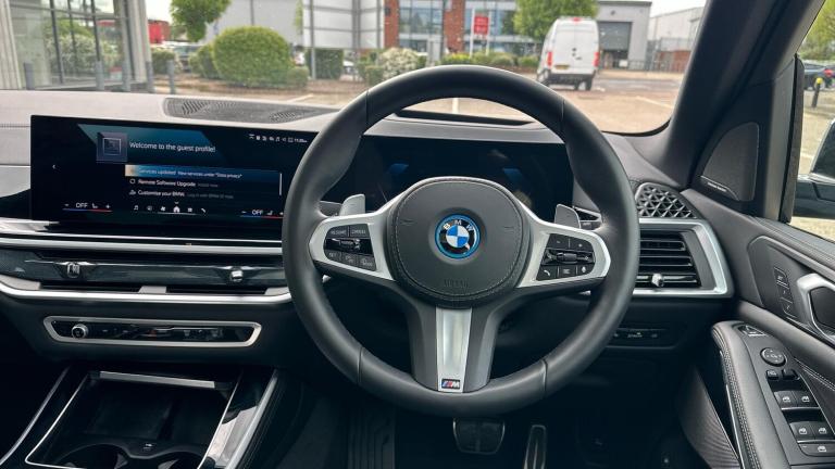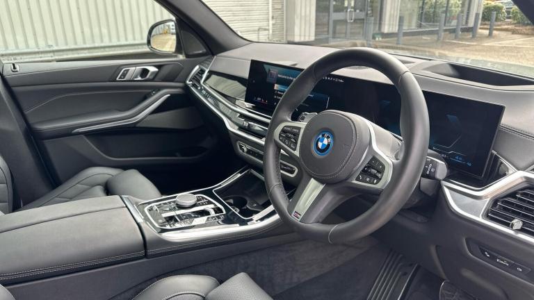 This 2025 BMW X5 50e M Sport is a BMW manufacturer approved vehicle with only one owner and a full dealership service history, presenting an exceptional example of this premium SUV. It boasts a powerful 3.0 litre petrol plug in hybrid engine paired with four wheel drive, meeting Euro 6 emission standards. With a towing weight of 2700 kg and remarkably low mileage for its age at just 9354 miles, this X5 offers both capability and peace of mind. Notable features include the impressive Sky Lounge Panoramic Glass Sunroof, a comprehensive Parking Assistant with rear camera and sensors, and Comfort Access for effortless keyless entry. Inside, you'll find Electric Memory Seats for personalised comfort and Integral Active Steering for enhanced manoeuvrability.The performance of this X5 is truly noteworthy, with an acceleration of 0-62mph in just 4.8 seconds, demonstrating its dynamic capabilities which set it apart from many other vehicles in its class. The large boot space further enhances its practicality, making it ideal for families and adventurers alike. This combination of advanced technology, impressive performance, and thoughtful features, all backed by excellent provenance, makes this BMW X5 50e M Sport a standout choice for those seeking a sophisticated and capable SUV.9.9% APR Subject to status** This vehicle will come with a minimum of 1 year warranty. One of our Sales Experts will be happy to send you a personalised video upon request. This will enable you to see the car in more detail. We hope that you choose us to make purchasing your next car an enjoyable non-stressful experience. We have a great range of financing options and we also offer a protection programme to protect your car. Ask about our F1 Ceramic Williams coating, Asset Protection, Tyre and Alloy Insurance, dent/scratch/scuff protection and extended Warranty ranging from 1 to 3 years. Finance is subject to status, terms and conditions apply.