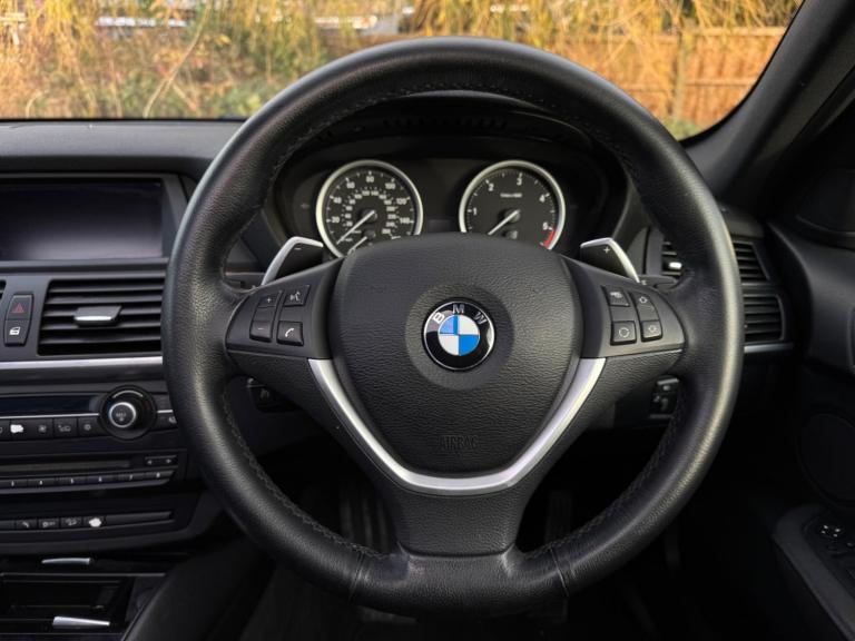 3 FORMER KEEPERSLOGBOOKSERVICE HISTORYMedia PackageVIN specDynamic PackageVIN specNavigation System - BMW Professional MultimediaVIN spec20in Alloy Wheels - Light Y Spoke - 214VIN specGlass SunroofRareVIN specSeat Adjustment - Front Electric with Driver MemoryVIN specEnhanced Bluetooth Telephone FunctionalityVIN specEnhanced Bluetooth Telephone Functionality with TelematicsVIN specSport Seats - FrontVIN specExterior Trim - High-Gloss ShadowlineVIN specDAB Digital RadioVIN specSeats - Front HeatedVIN specRunning Boards - AluminiumVIN specHeadlining - AnthraciteVIN specDoor Mirrors - Folding - Automatically DimmingVIN specUSB Audio InterfaceVIN specBMW AssistVIN specNevada Leather - BlackVIN specThis 2012 BMW X6 30d presents a remarkable opportunity with its exceptionally low mileage of just 86,794 miles for a vehicle of its age. Powered by a robust 3.0L Diesel engine and featuring a capable Four Wheel Drive system, this X6 offers a compelling blend of performance and practicality. Inside, you'll find a wealth of comfort and convenience features, including an electric glass sunroof, front electric seats with driver memory, and enhanced Bluetooth telephone functionality. Manoeuvring is made effortless with front and rear Park Distance Control, while the automatic air conditioning with two zone control ensures a pleasant cabin environment for all occupants.The X6 30d excels in several key areas, demonstrating its superiority over comparable vehicles. Its impressive acceleration, achieving 0-62mph in a swift 7.5 seconds, provides a dynamic driving experience. Furthermore, its large boot space offers ample room for luggage or shopping, making it a versatile choice for families or those with active lifestyles. The vehicle also benefits from a low insurance group, which can contribute to lower running costs. With a substantial towing weight of 2700 kg, this BMW X6 is well equipped for a variety of needs.