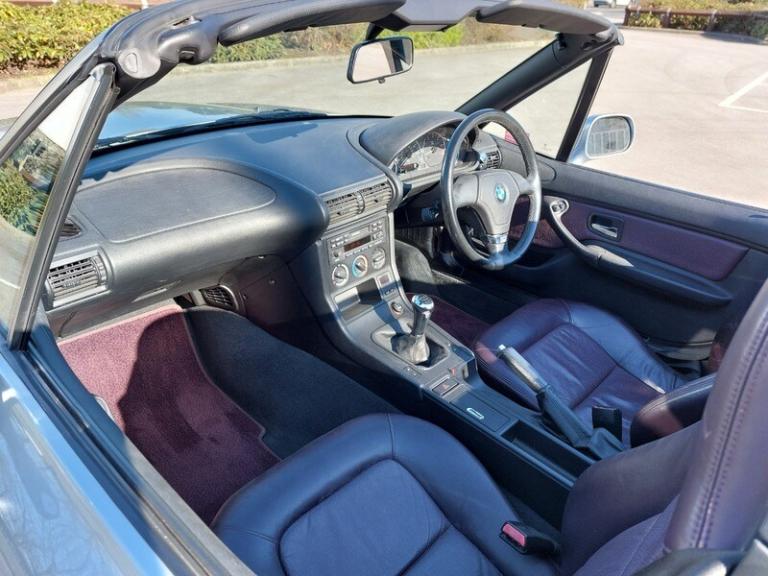 Absolutely unique and stunning ONE owner BMW Z3 Convertible, finished in Arctic Silver Metallic with 'BMW Individual' Violet Oregon Leather interior This car comes with a colour coded hardtop with original protective storage bag, rear window protective cover, also with the original storage bag. Complete with service history and full BMW book pack, the original BMW tool kit still fully intact in the boot. All four 16' 5 spoke original Alloy wheels are unmarked, the car comes with it's original BWW Radio cassette and the original BMW Violet carpet mats to complement the interior leather. MOT'd in June with no advisories and thoroughly inspected by our independent service centre we welcome any question or inspection. This little car has been truly cosseted all it's life by it's one lady owner from new!