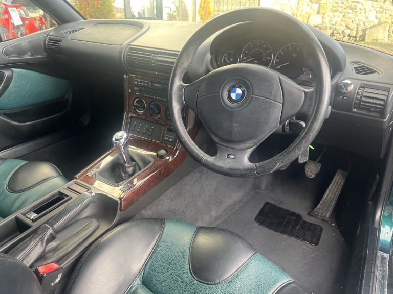 This 1999 BMW Z3 1.9 Roadster is a truly exceptional example, finished in the highly desirable Boston Green and owned and driven by one lady from new. Showing low mileage and clearly cherished throughout its life, this car offers a rare opportunity to acquire a Z3 with outstanding provenance and originality.The interior features beautiful two-tone leather heated sport seats, complemented by a walnut dashboard that adds a timeless and elegant touch to the cabin. The manual release electric roof operates smoothly, allowing you to enjoy open top motoring with ease. Power comes from the reliable 1.9 litre petrol engine paired with a 5 speed manual gearbox, delivering an engaging and enjoyable driving experience.This Z3 is supplied with a complete maintenance history file including the original purchase invoice, a fully BMW stamped service history book, and the original BMW leather wallet containing the handbook. It also retains its original tonneau cover, tool kit and first aid kit, further highlighting the care and attention this vehicle has received.Additional features include heated door mirrors, alloy wheels, and a private registration plate which is included in the sale. A beautifully presented and increasingly collectible BMW Z3, ideal for both enthusiastic driving and future appreciation.